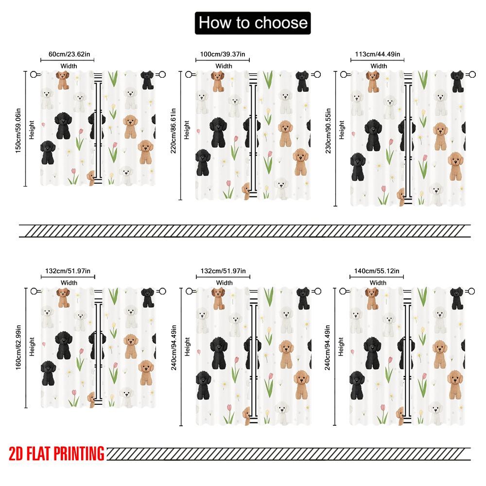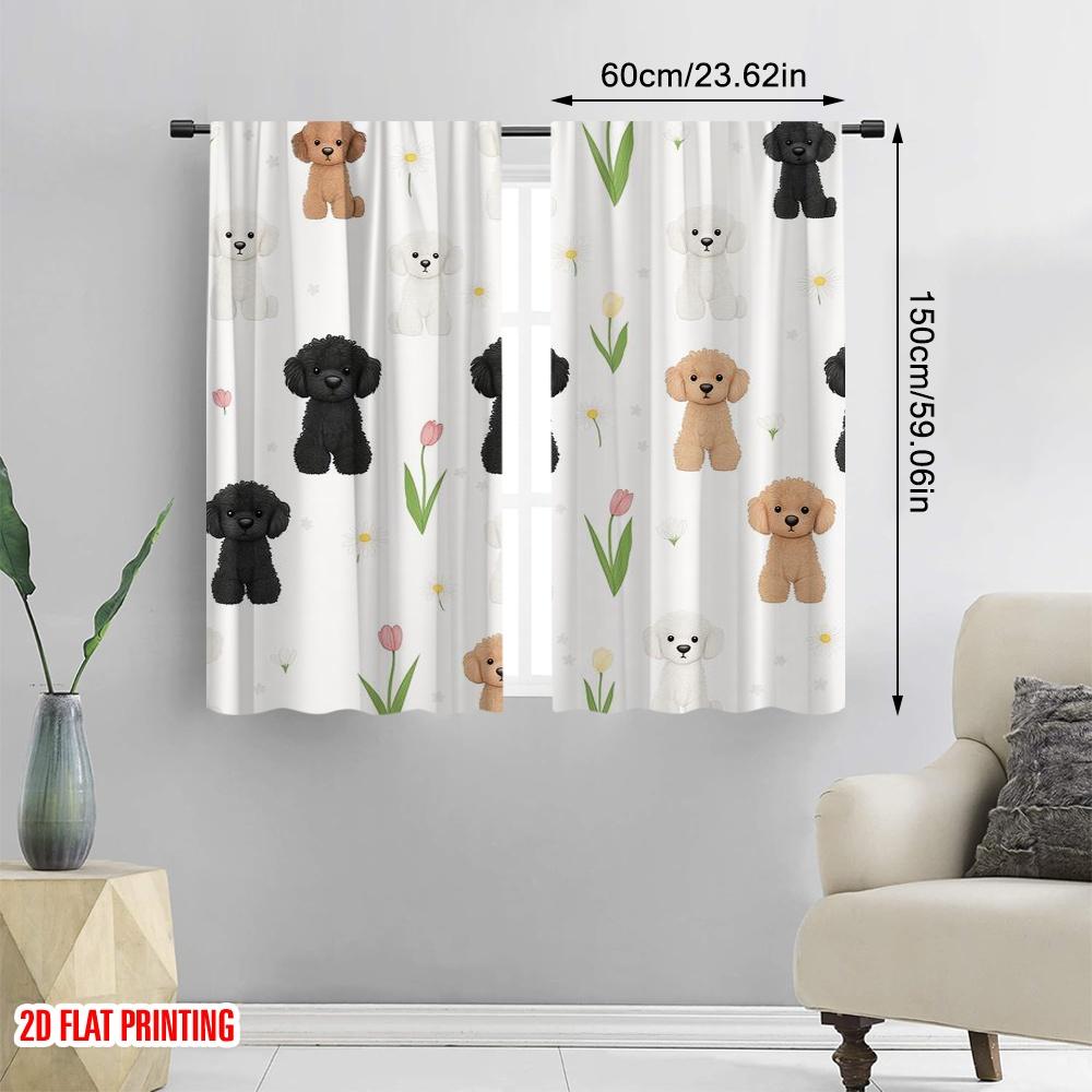 2pcs,2D plane printing Pattern Curtains Poodle Pattern Durable 100% Polyester Fabric (without rod) Decorations Outdoor Perfect