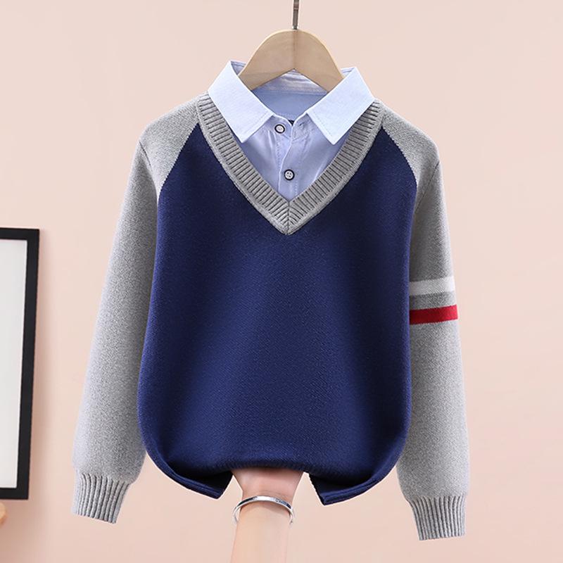 Вязаный свитер для мальчиков на флисовой подкладке: Плотный, Дизайн «Двойка» для Весны/Осени/Зимы