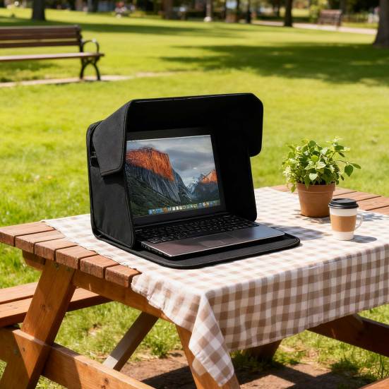 Представляем солнцезащитный козырек для ноутбука, высококачественный и многофункциональный аксессуар, предназначенный для улучшения вашего опыта работы на открытом воздухе.. Изготовленный из прочного и износостойкого материала, этот солнцезащитный козырек для ноутбука обеспечивает долгий срок службы, при этом он легкий и удобный для переноски в дороге.