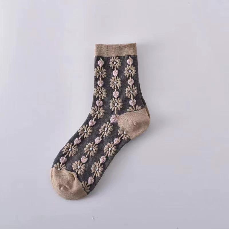 1/5 пар носков до середины икры с 3D-вышивкой и этническим узором, универсальные текстурированные носки, всесезонные, с цветочным принтом, повседневные женские