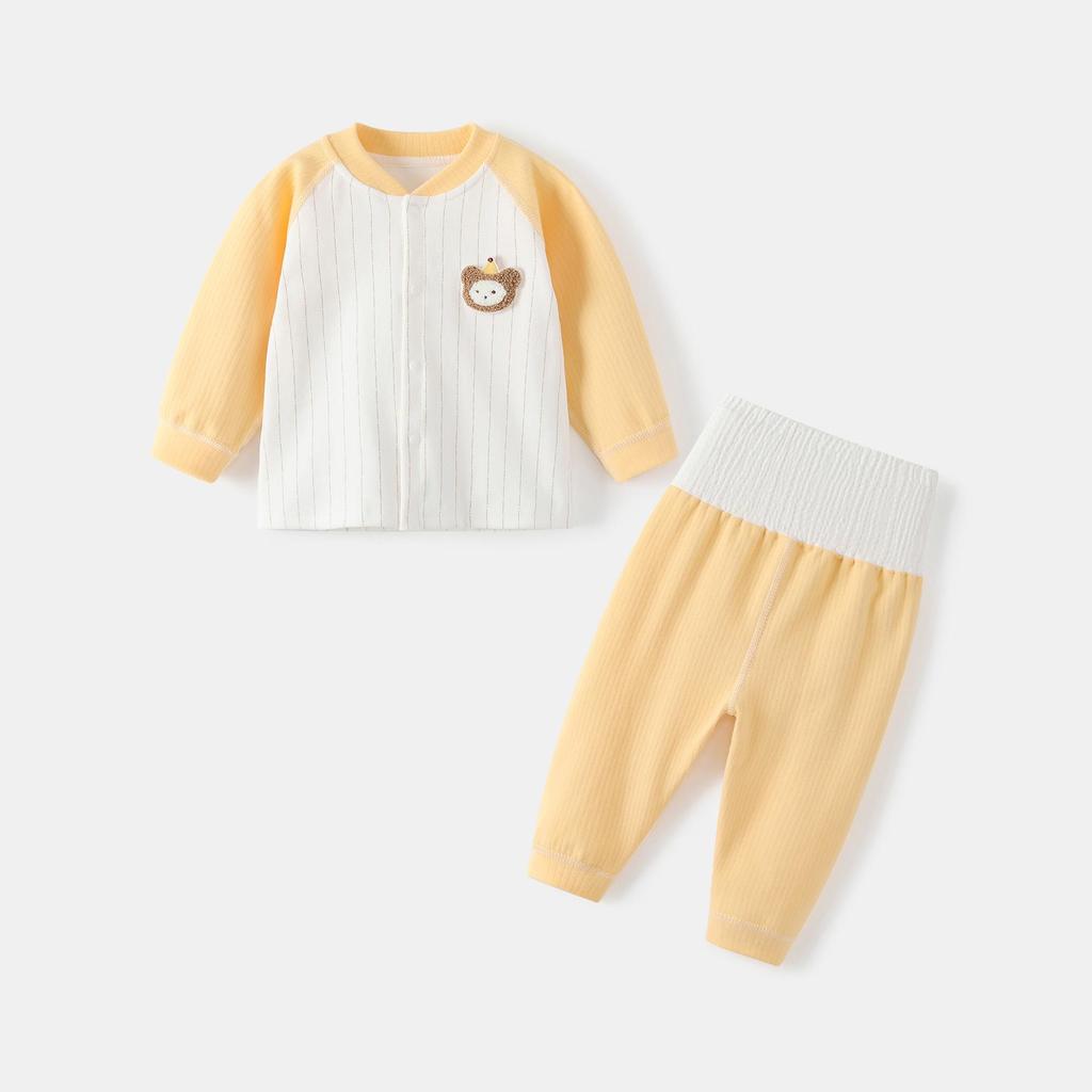 Представляем красиво оформленный комплект детской одежды, идеально подходящий для переходных сезонов осени и весны.. Этот комплект, изготовленный из чистого хлопка, обеспечивает комфорт вашего новорожденного благодаря своей мягкой, дышащей ткани. Брюки с высокой талией обеспечивают защиту живота, даря вашему малышу дополнительное тепло и безопасность.. Этот нежный и уютный наряд идеально подходит для того, чтобы вашему малышу было тепло и комфортно.
