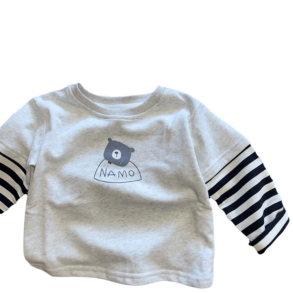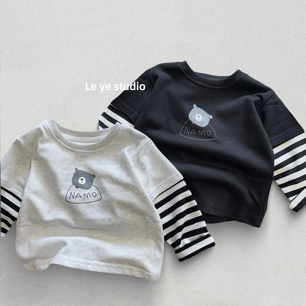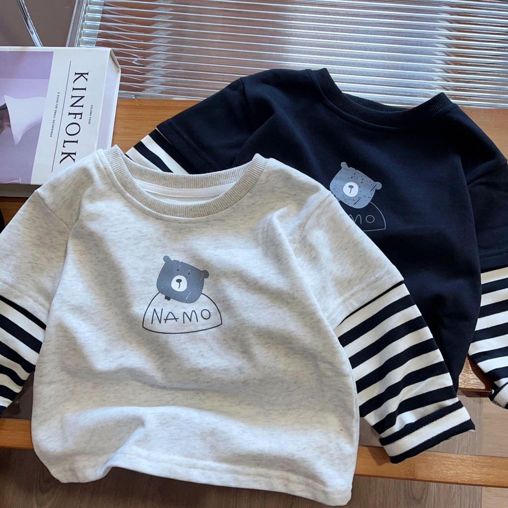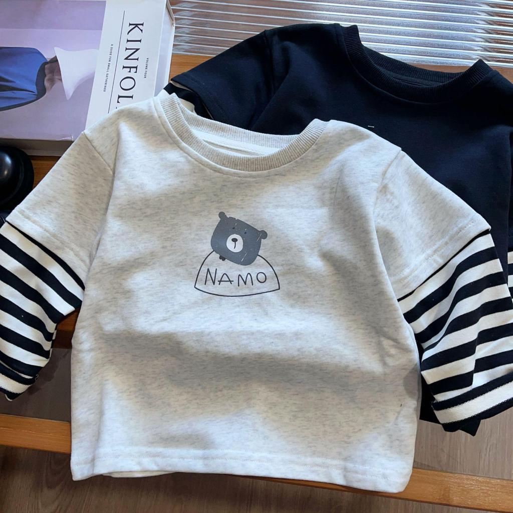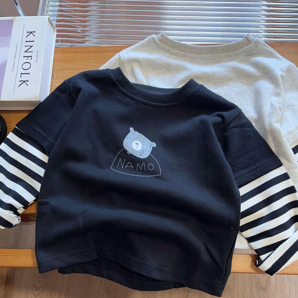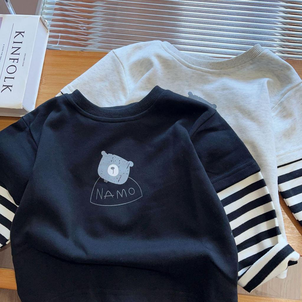 Детская футболка с длинным рукавом в корейском стиле с мультяшным принтом - Осенняя мода, топ-обманка из двух частей для мальчиков и девочек