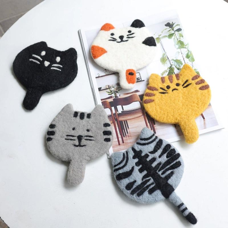 Эти прочные подставки, изготовленные из премиального мягкого войлока, украшены игривым кошачьим узором, обеспечивая как функциональную теплоизоляцию, так и причудливый декор стола.