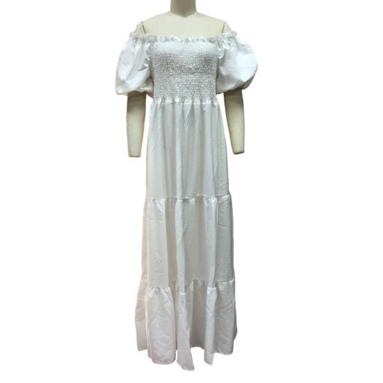 Подчеркните свой стиль с помощью этого элегантного женского платья из мягкой и удобной ткани из полиэстера.. Простой, но изысканный дизайн с открытыми плечами на одно плечо идеально подходит для весенних и летних случаев..