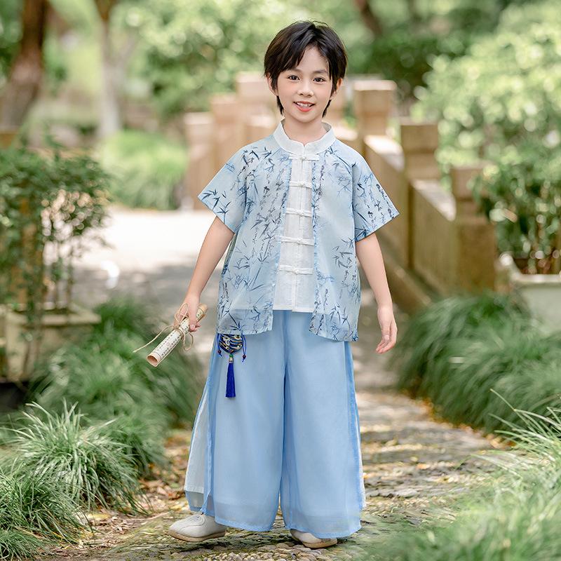 Этот яркий и стильный набор идеально подходит для детей, которые любят приобщаться к культурной моде, и представляет собой восхитительное сочетание изумрудного бамбука и мотивов орхидей.. Этот комплект танского костюма, изготовленный из удобной хлопковой смеси, предназначен для того, чтобы детям было прохладно и комфортно во время летних выступлений.. Подходящий как для мальчиков, так и для девочек, он предлагает очаровательный и аутентичный китайский стиль, который идеально подходит для различных мероприятий, гарантируя, что ваш ребенок выделится в красочной традиции.