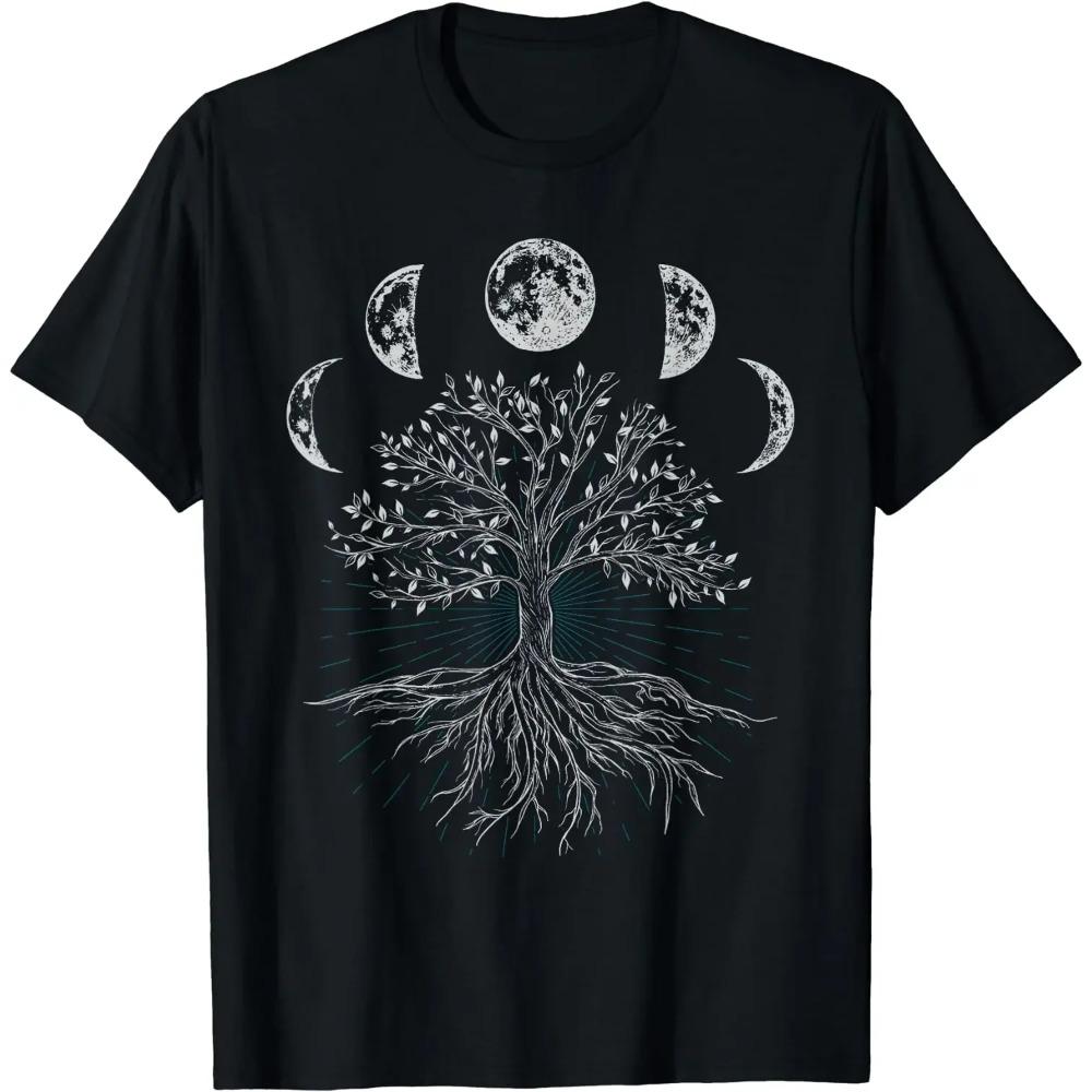 Древо Жизни Фазы Луны Готический Оккультный Футболка Повседневная На Каждый День Четыре Сезона Футболки Оверсайз Футболка Хэллоуин