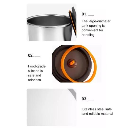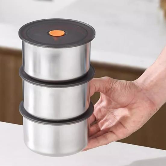 Повышенная свежесть: Изготовленный из прочной нержавеющей стали, этот штабелируемый кухонный органайзер оснащен встроенным силиконовым уплотнительным кольцом на крышке, обеспечивающим герметичное закрытие для предотвращения протечек и сохранения свежести продуктов дольше.