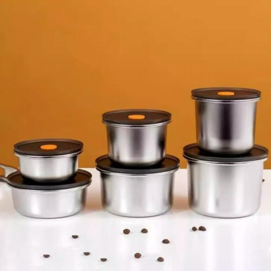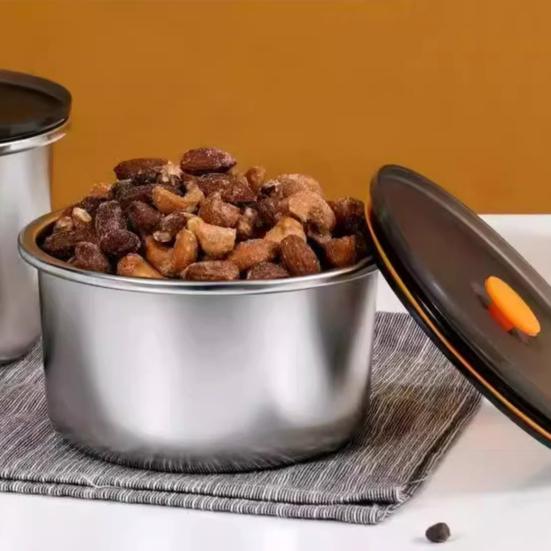 Прочный и стильный: Изготовленная из высококачественной нержавеющей стали, эта миска для хранения свежих продуктов сочетает в себе долговечность и элегантный дизайн, предлагая практичное и стильное решение для ваших потребностей в хранении продуктов.