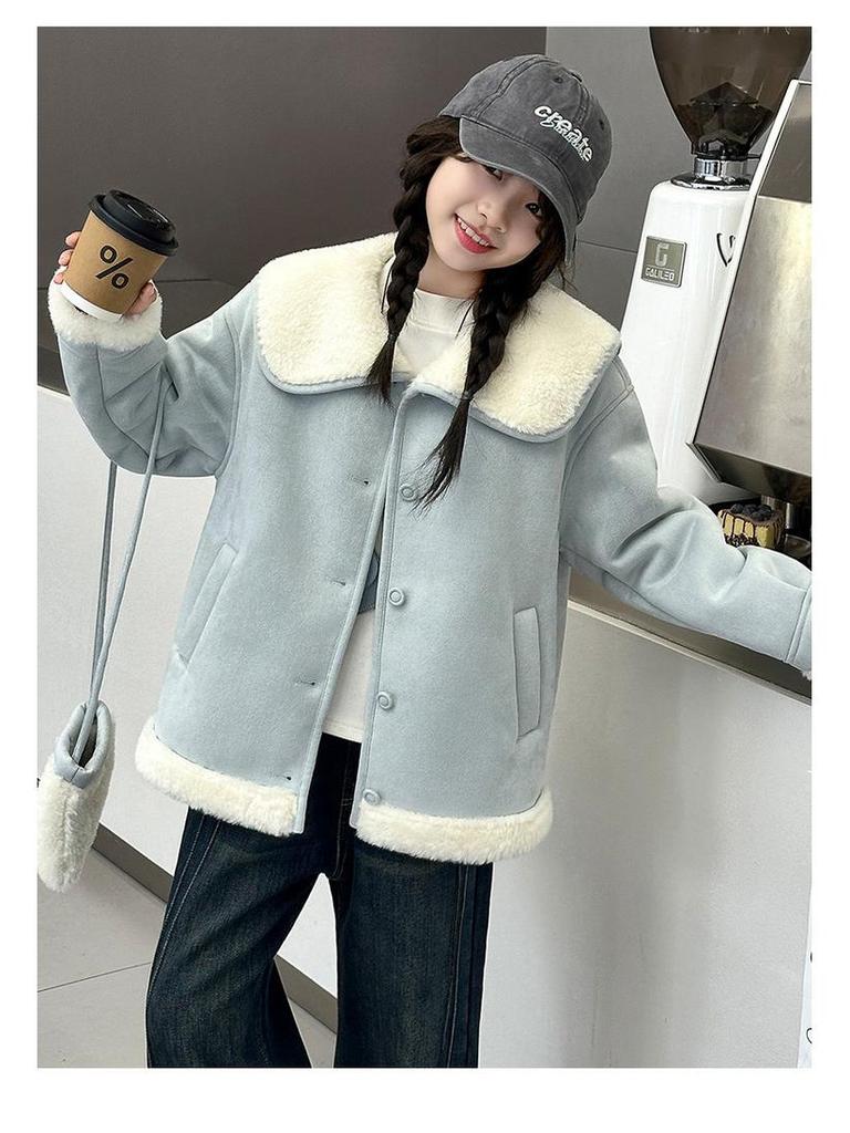 Это очаровательное пальто для девочек предназначено для осенне-зимнего сезона, предлагая и стиль, и тепло.. Он выполнен в стиле пушистого свитера, с мягкой и уютной флисовой подкладкой, которая обеспечивает комфорт в течение всего дня.. Пальто, изготовленное из премиальной ягнячьей шерсти, обеспечивает оптимальную изоляцию, а длинный рукав обеспечивает дополнительное покрытие в прохладную погоду.. Идеальное для любого случая, это пальто сочетает в себе практичность и шикарный вид, что делает его идеальным дополнением к гардеробу вашего малыша.