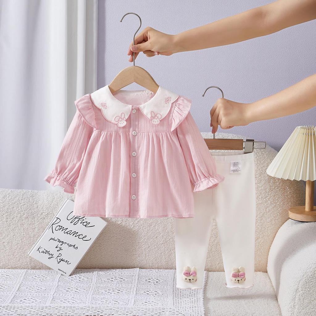 Осенний милый комплект из двух предметов: рубашка с длинным рукавом и воротником-лепестком для младенцев и девочек