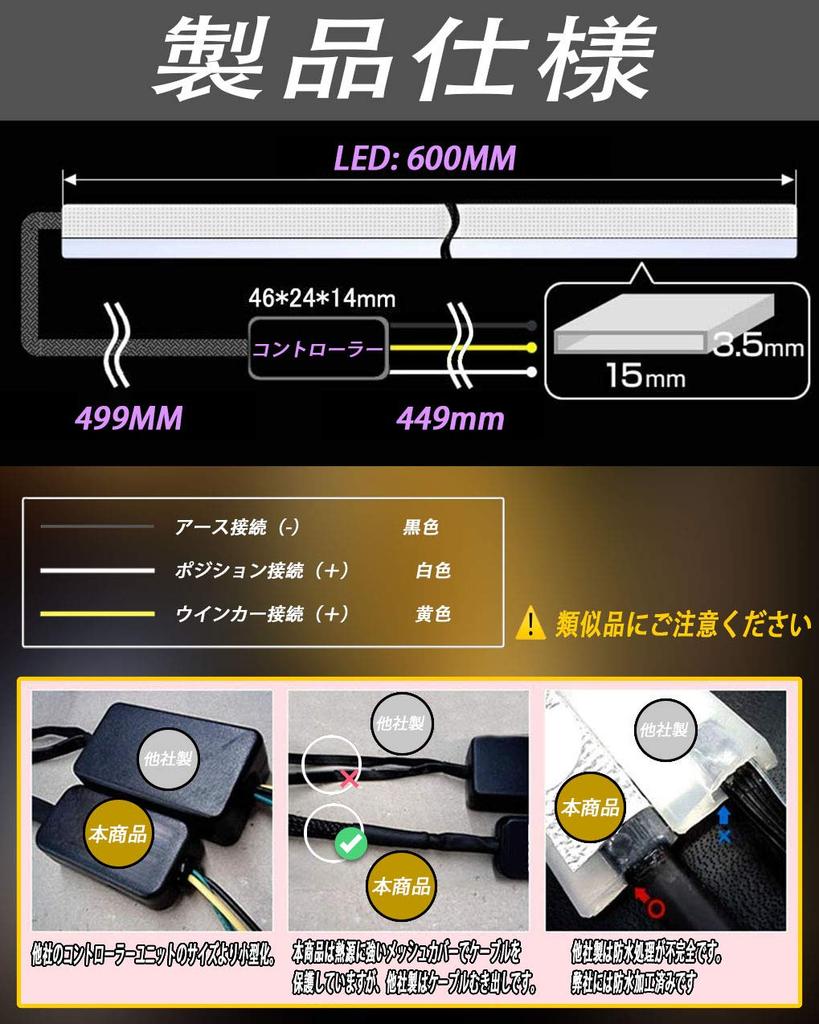 характеристики продукта: Оснащен динамичными указателями поворота и последовательными функциями! ◆ Размер: Длина 600 мм x ширина 15 мм x толщина 4 мм ◆ Напряжение: Только для 12В автомобилей ◆ Потребляемая мощность: 13,5 Вт (за единицу) ◆ Светлый цвет: Синий/Янтарный ◆ Водонепроницаемый IP67 (лента + контроллер) ◆ Гарантия: 1 год