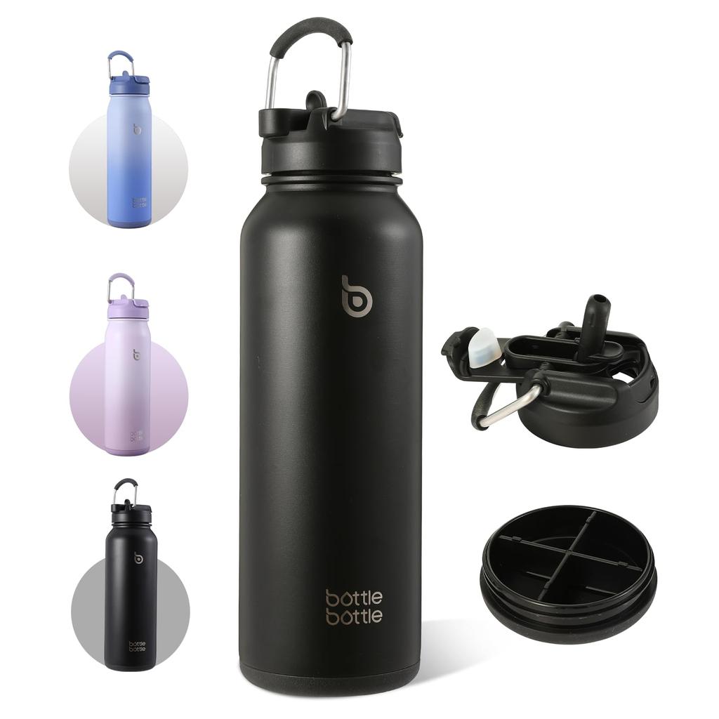 БУТЫЛКА БУТЫЛКА Бутылка для воды, 1,2 литра, Большая вместимость, Нержавеющая сталь, Герметичная, Двусторонняя крышка, Подходит для девочек, мальчиков и взрослых, 1,2 л, с соломинкой