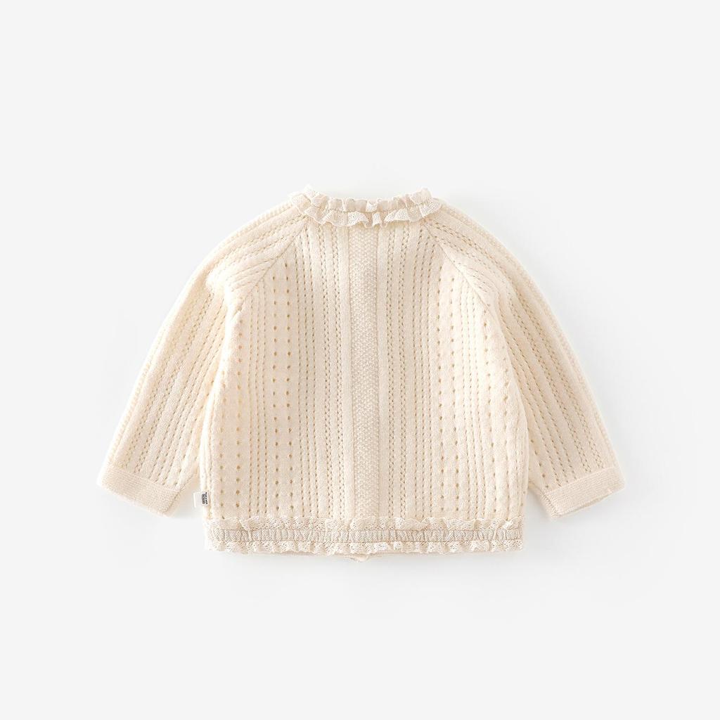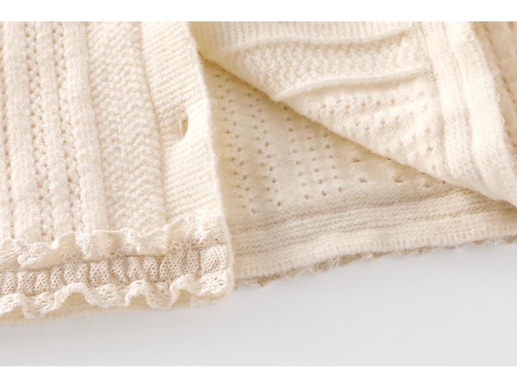 Девочковый осенний вязаный кардиган с кружевным воротником – Стильная детская мода в корейском стиле.