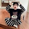 Полосатый мультяшный пижамный комплект для мальчиков на осень/зиму: Мягкий, Плотный и Пушистый Двухпредметный — купить товар онлайн с бесплатной доставкой по всему миру!