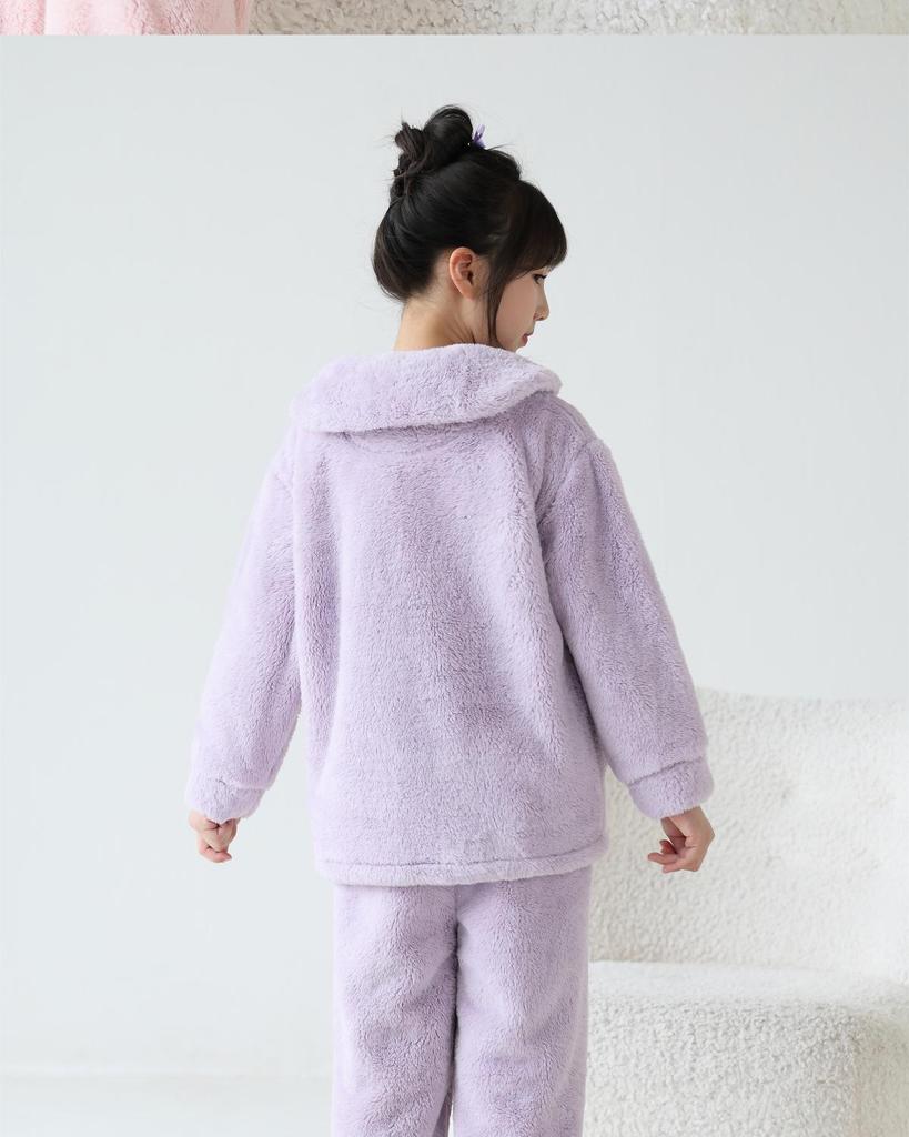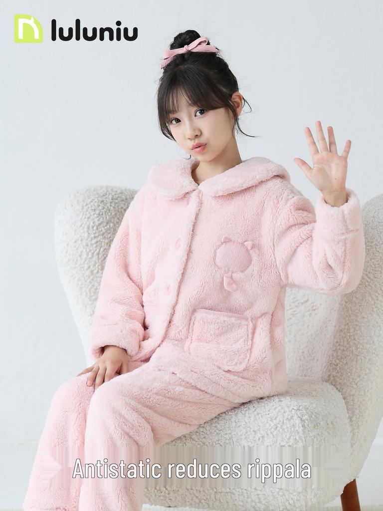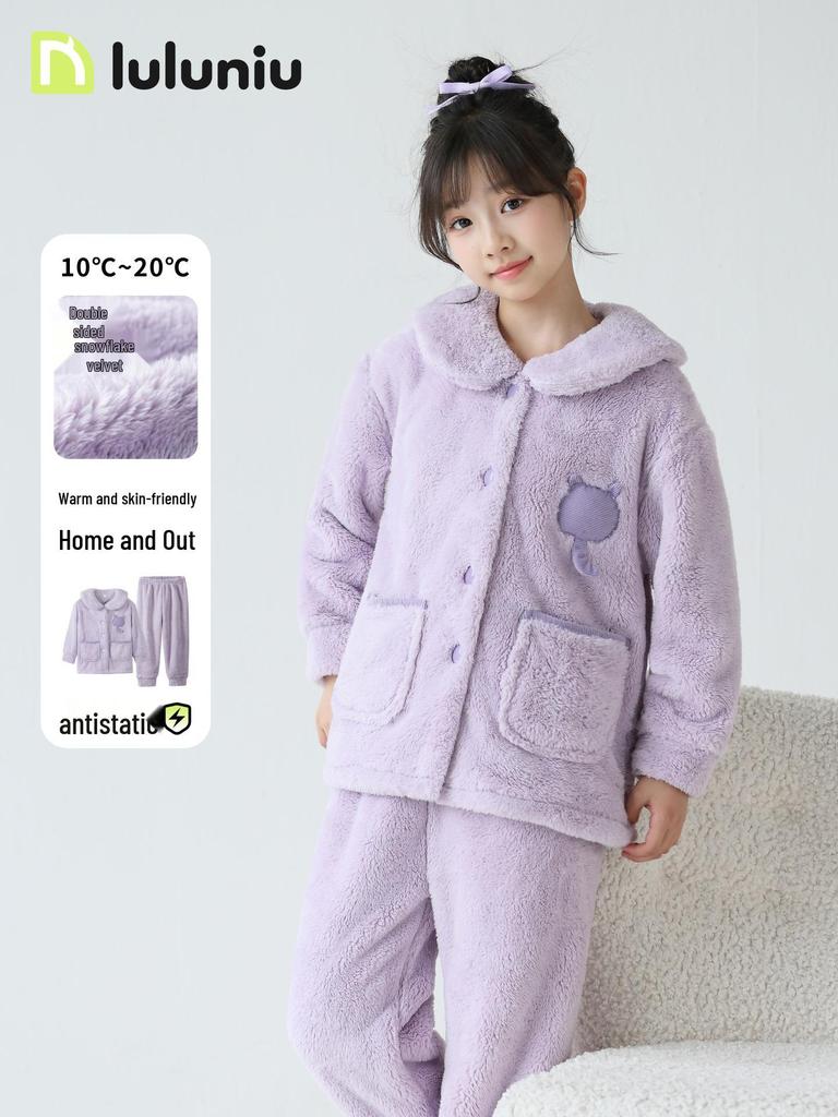 Experience ultimate comfort for your little ones with these girls' flannel pajamas, designed specifically for the autumn and winter seasons. Crafted from cozy and thickened coral fleece, these pajamas ensure warmth and comfort during cooler nights. The polyester material offers durability and a soft touch, making it gentle on delicate skin. Perfect for lounging and bedtime, this homewear set is the ideal blend of style and functionality for kids.