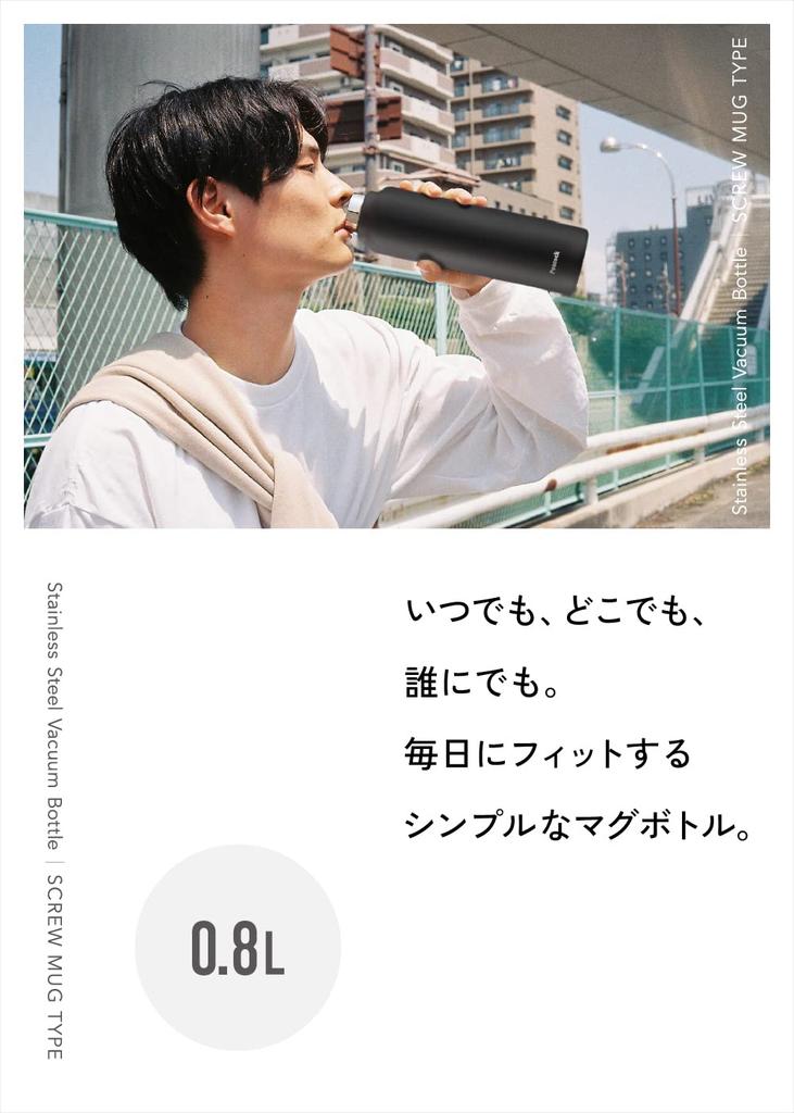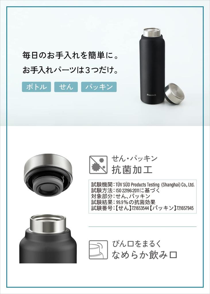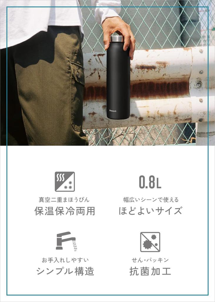 Бутылка для воды Peacock, 800 мл [Цвет, доступный только онлайн] Легкий термос с вакуумной изоляцией, 0,8 л, Графитово-черный, AKY-80 BGR