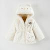 Свитер-пальто с капюшоном для девочек, с вышивкой мультяшного кота, пушистый, стеганый из искусственного меха, для осени/зимы