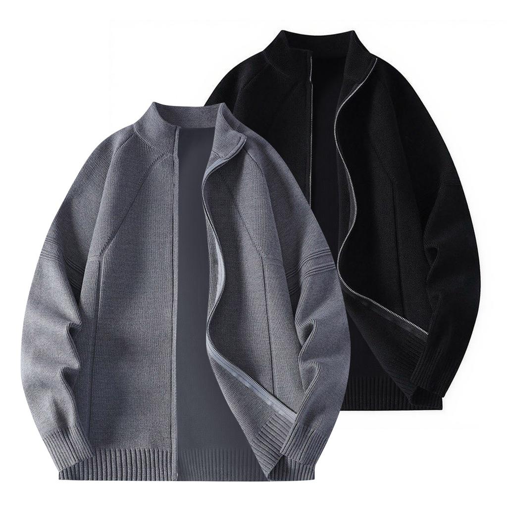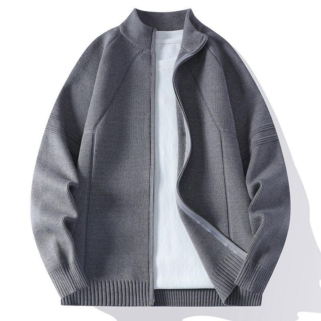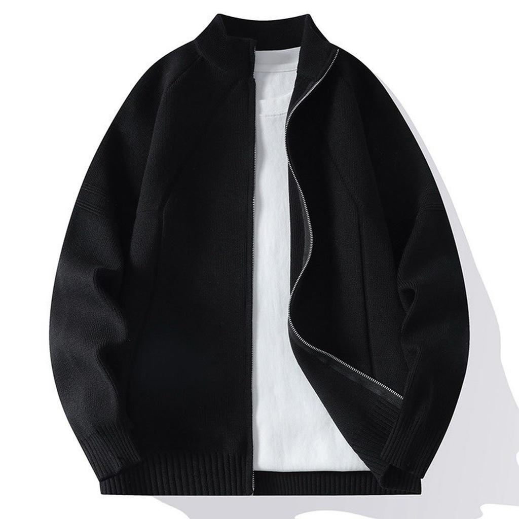 Мужская однотонная текстурированная повседневная спортивная свободная модная вязаная куртка на молнии