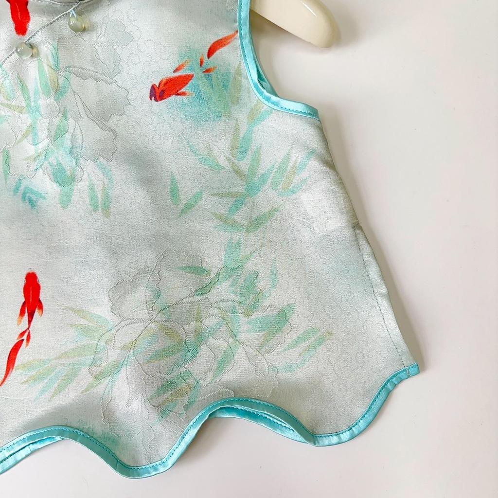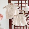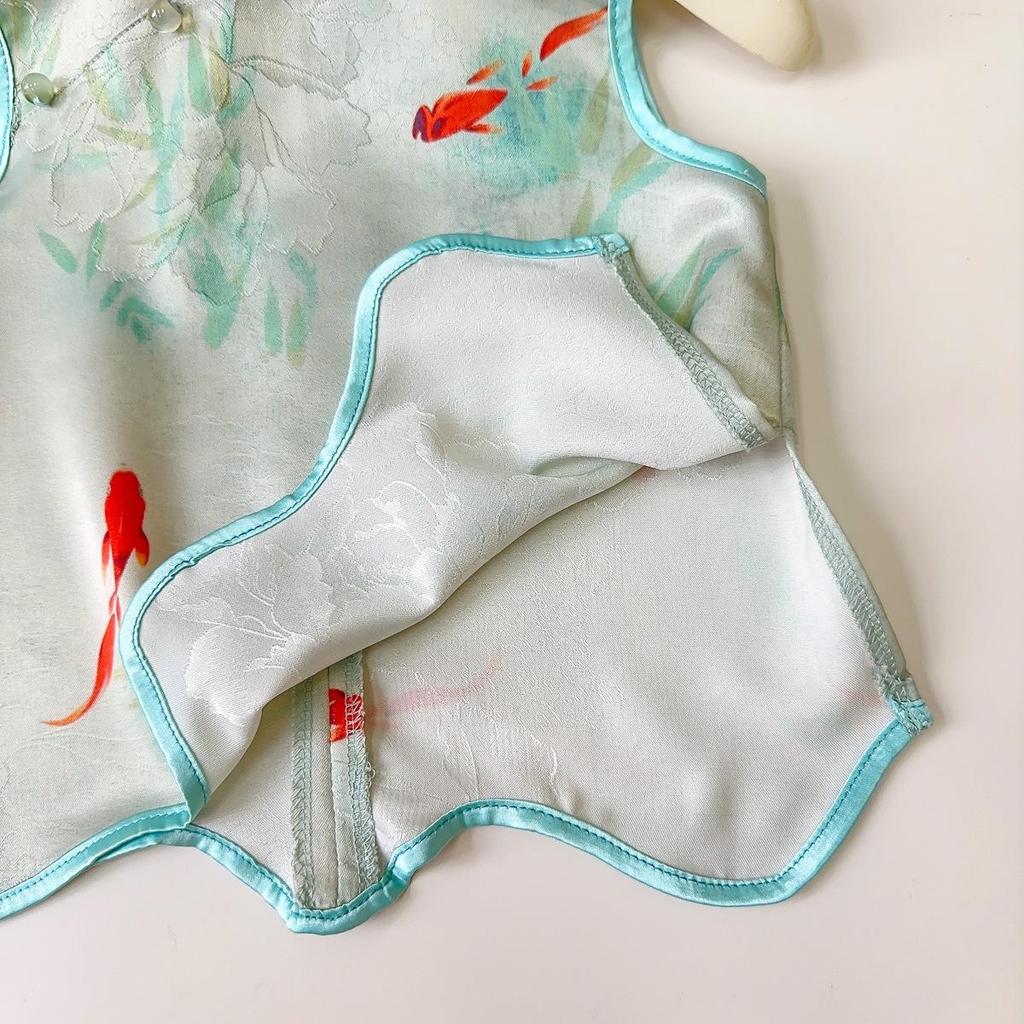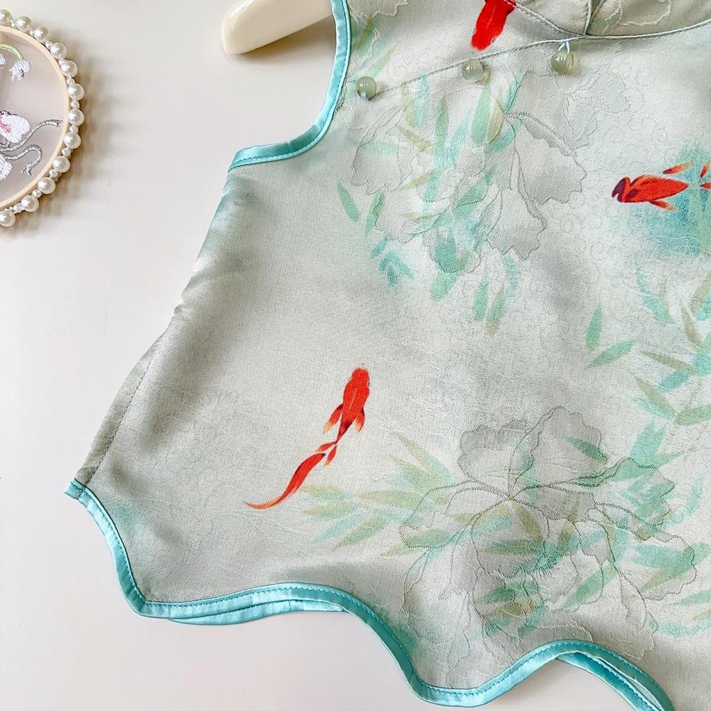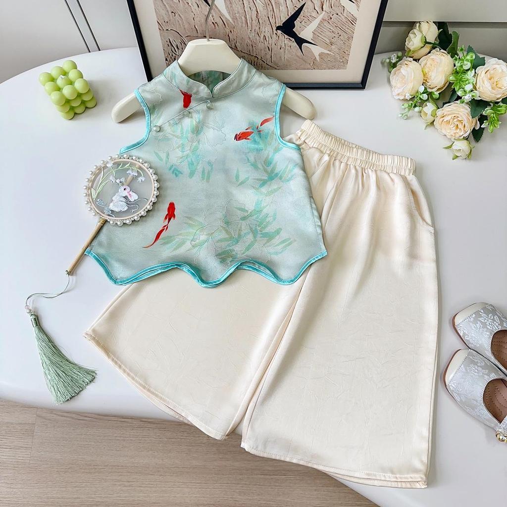This Girls' Summer Hanfu Two-Piece Set features a stylish and comfortable vest paired with long pants, perfect for warm-weather occasions. Crafted from soft and breathable corduroy, this set offers a modern twist on traditional design. It boasts a sleeveless vest, ensuring ease of movement and a cool feel. Ideal for keeping cool and chic during summer outings or special events, this hanfu set combines tradition with contemporary comfort.