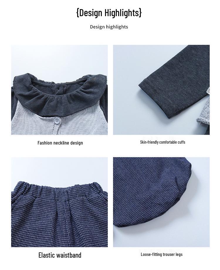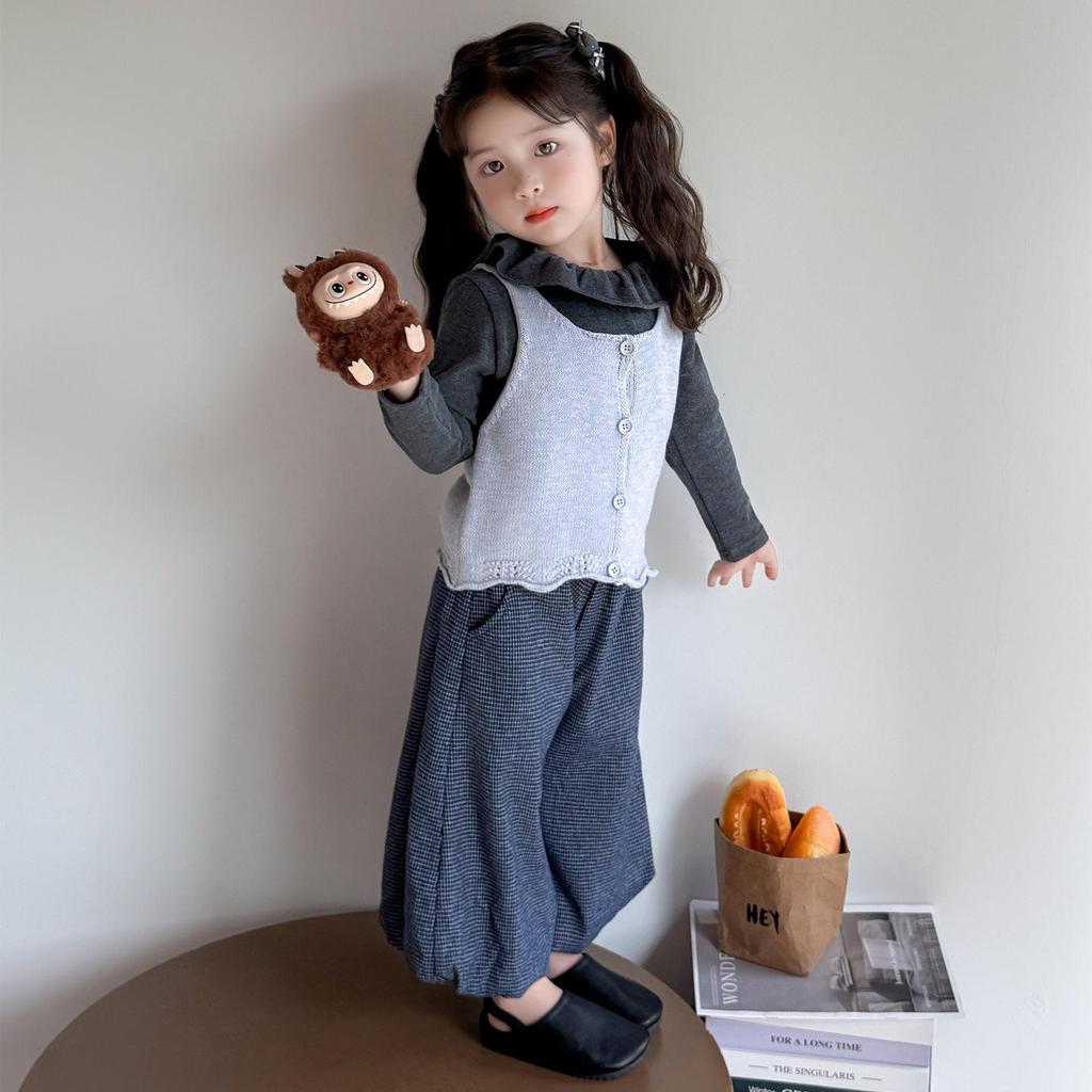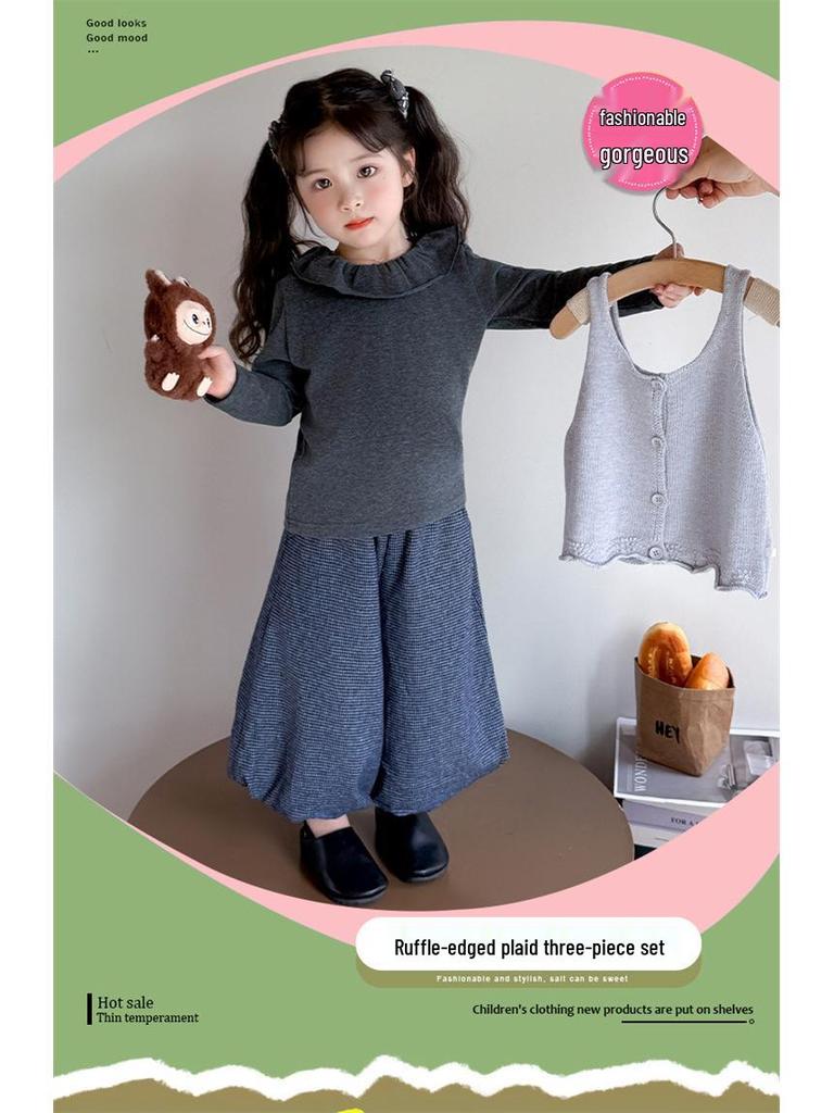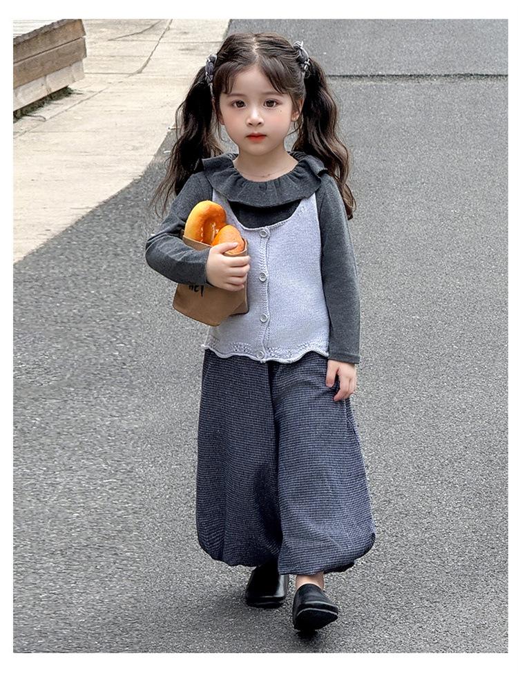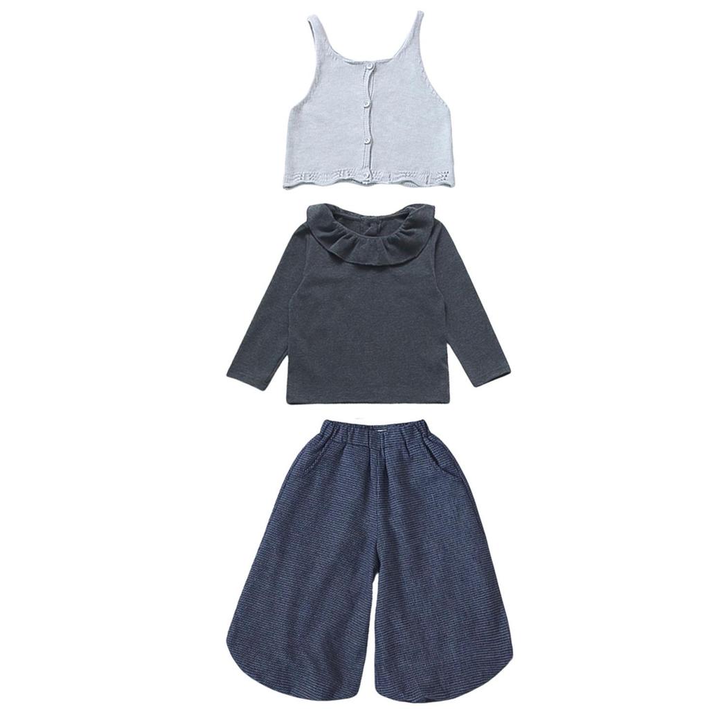 Осень 2025 Модный комплект из 3 предметов для девочек: брюки палаццо с длинным рукавом