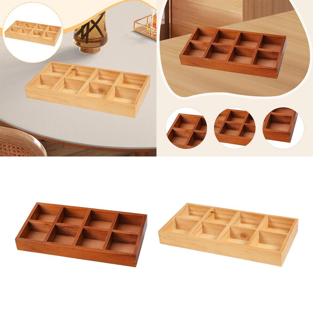 Wooden Divided Storage Box Sturdy Versatile Showcase Display Holder Practical 8 Grid for Mini Flowerpots Collectibles Jewelry