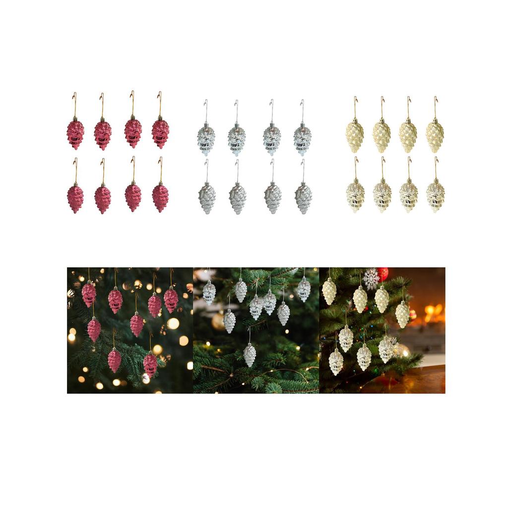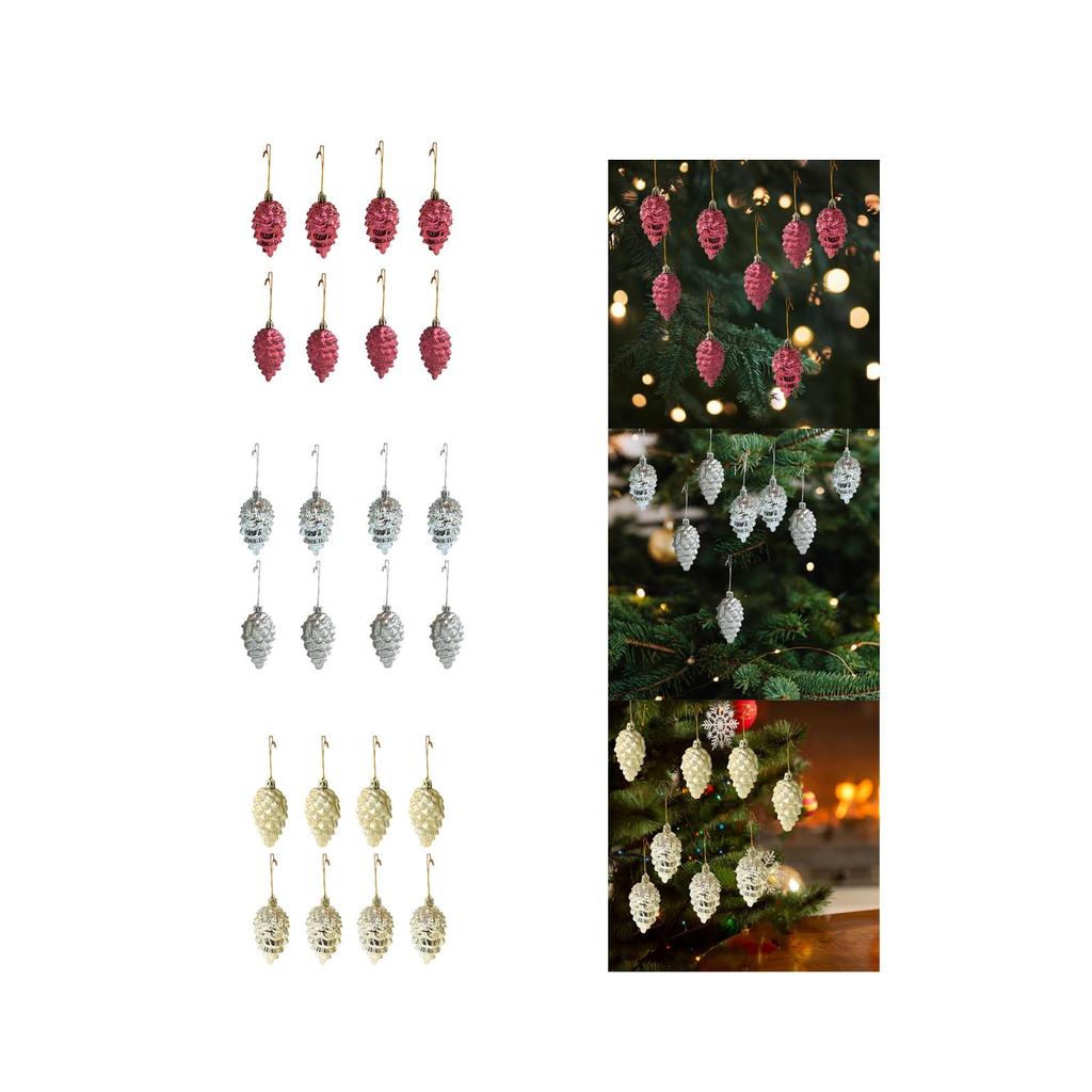 8Pcs Pinecone Christmas Tree Decorations Charm Pendants Decorative Xmas Balls Baubles for Window Wall Door Anniversary Indoor