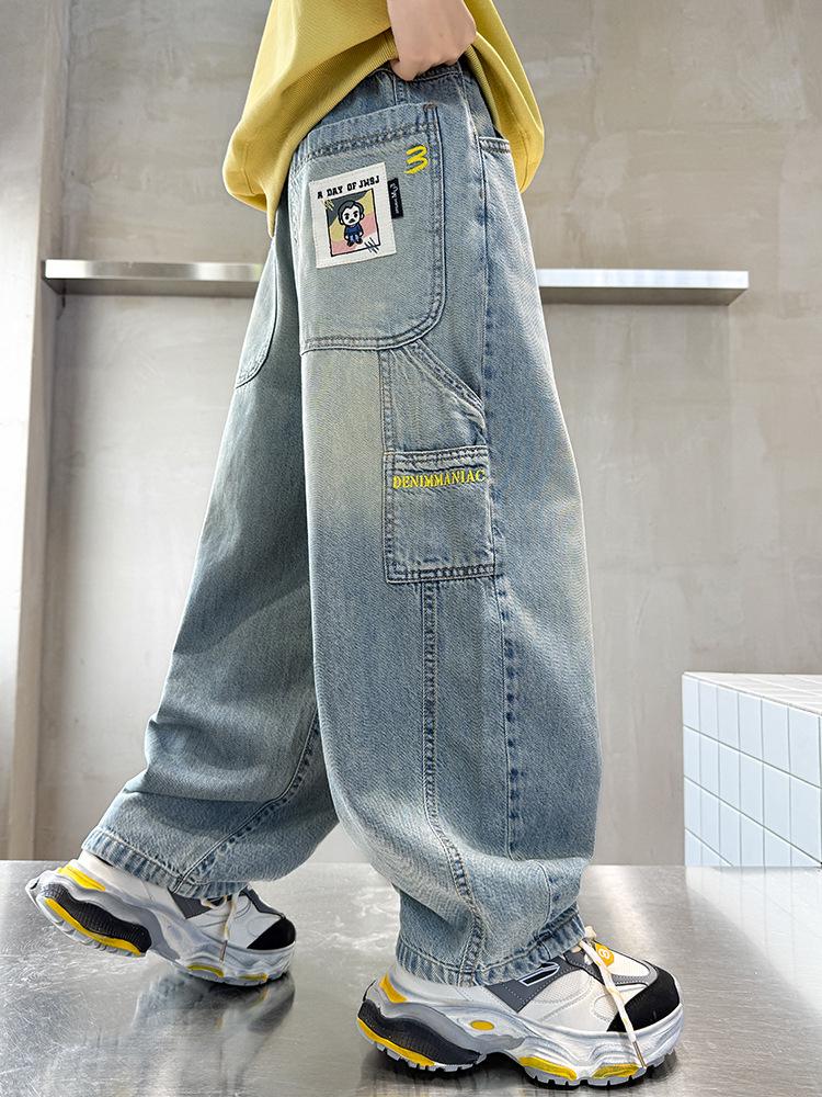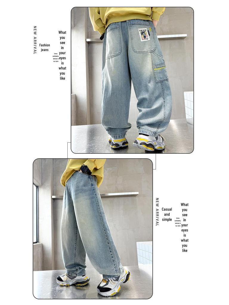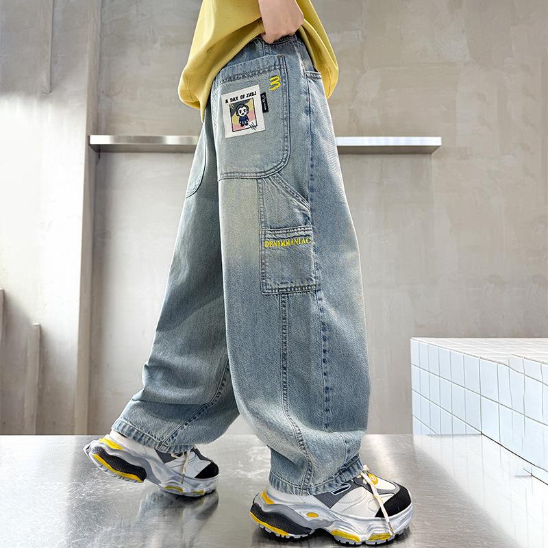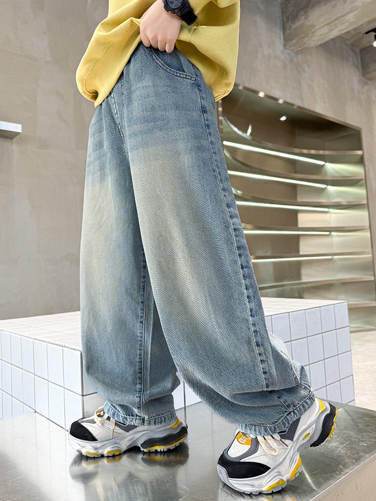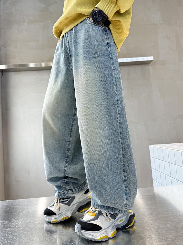 Мальчиковые джинсы прямого кроя светло-голубого цвета - Коллекция Весна-Осень 2025