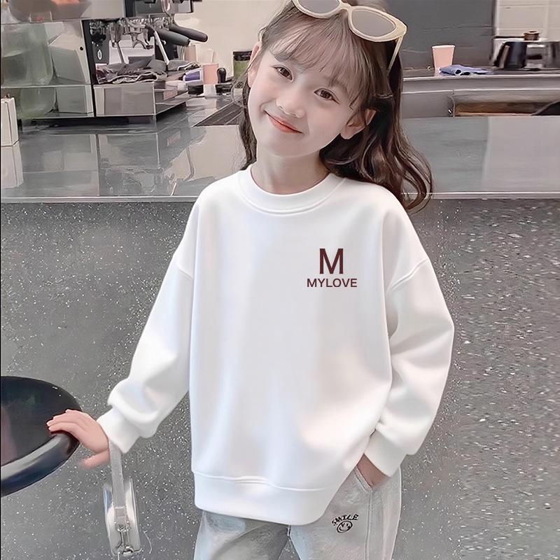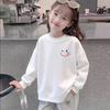 Белый хлопковый свитшот с длинным рукавом для девочек - Легкий, свободного кроя, универсальный топ с принтом для весны/осени, подходит для детей