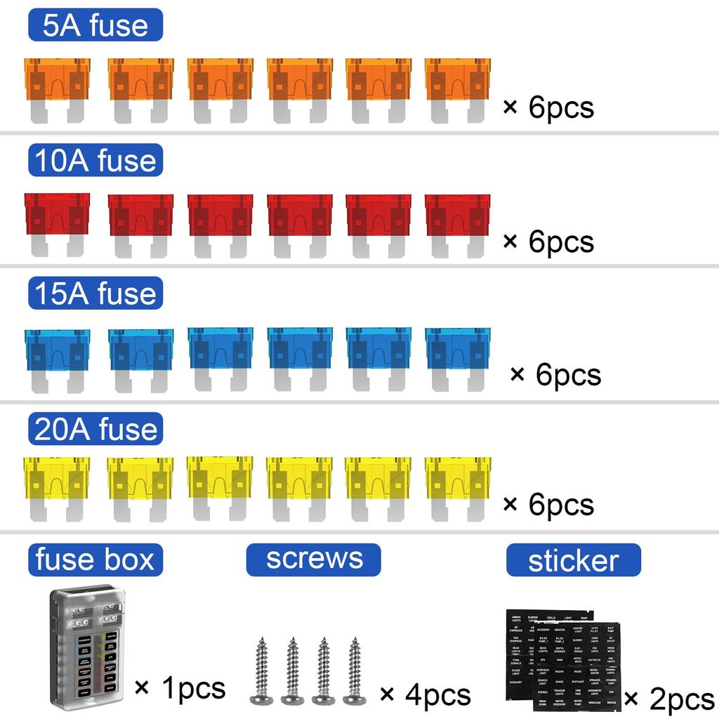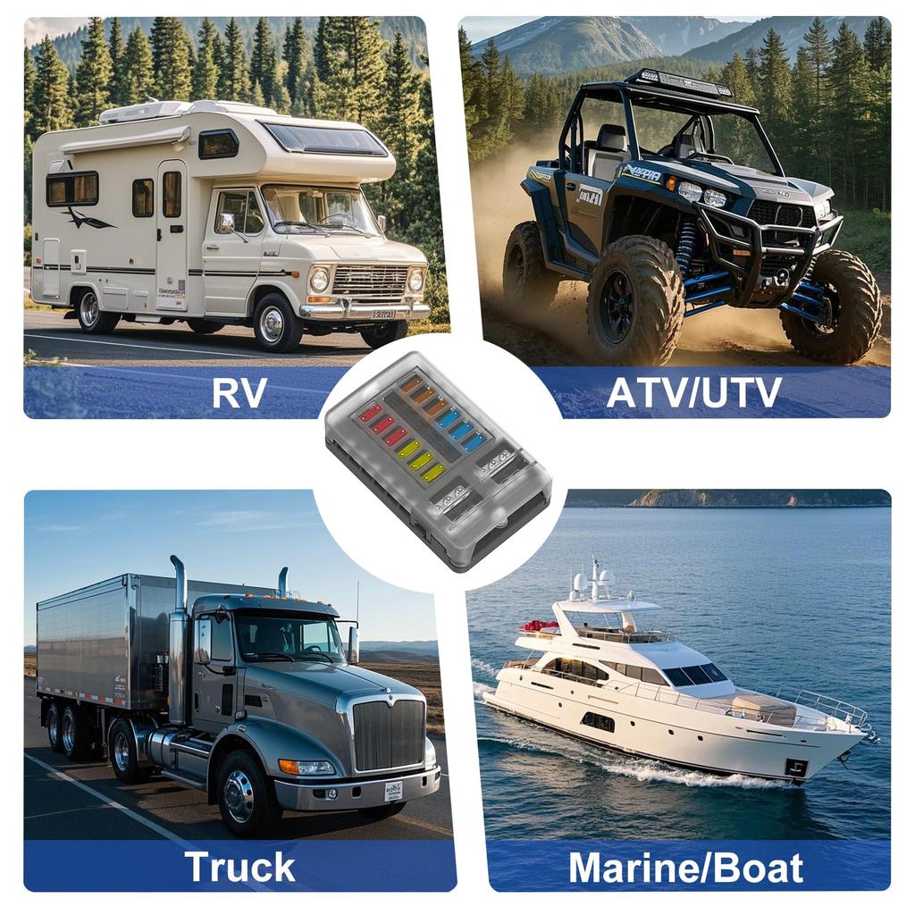 12-позиционный блок предохранителей / Блок предохранителей 24 В ATO/ATC со светодиодным индикатором на 24 предохранителя для автомобиля, лодки, фургона, грузовика