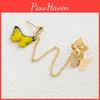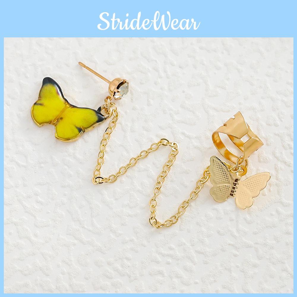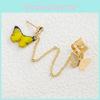 These butterfly earrings come in three captivating colors: Peacock Blue, Peach, and Yellow. Each hue is thoughtfully chosen to complement a variety of skin tones and outfit choices, making these earrings versatile pieces that can transition smoothly from casual daywear to an elegant evening look. The added touch of artificial gemstones or semi-precious stones set in an alloy base provides a layer of sophistication and sparkle, perfect for making a statement. The simple yet stylish chain earring clip design ensures they stay comfortably and securely in place, allowing you to wear them all day with confidence.