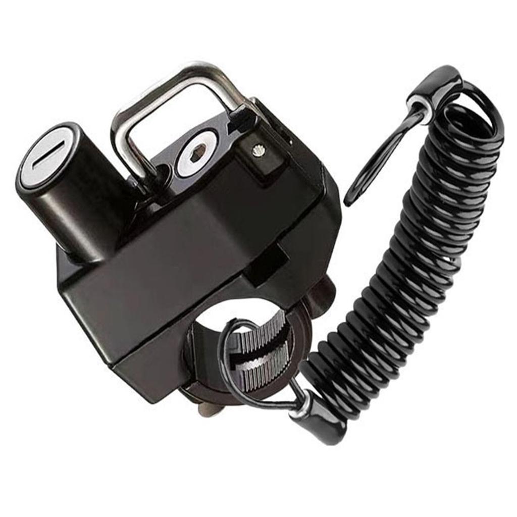 Motorcycle Helmet Lock for 22mm-28mm Handlebar Retractable Steel Cable with Key and Special Wrench, Multifunctional Holder