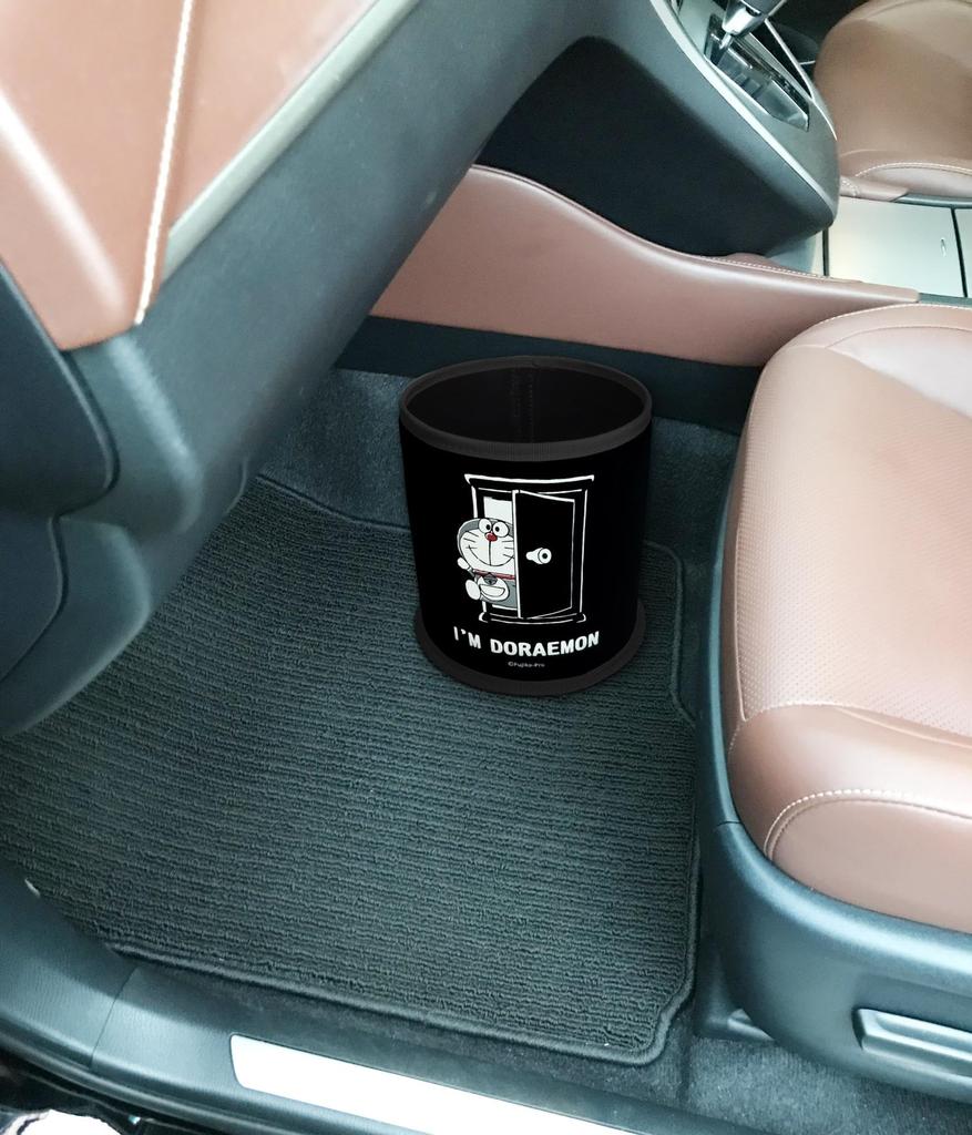Doraemon DORAEMON Car Trash Storage Small Items, Stylish, Fabric, Black, Simple, Round, Slim, Won't Fall Over, Cute