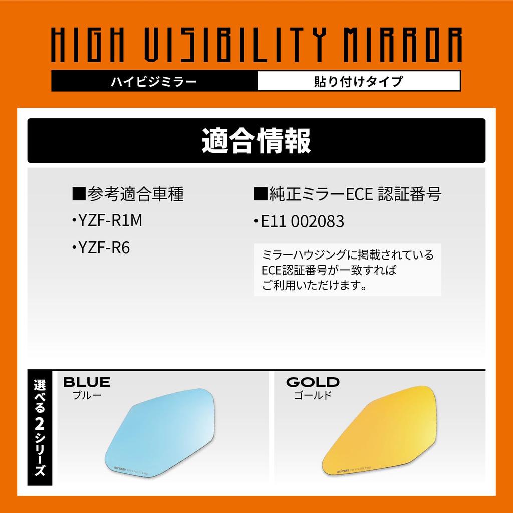 Daytona YAMAHA2 41476 High Visibility Mirror, For Motorcycles, Paste Type, For YZF-R6, Etc., Wide Angle, Anti-Glare, Glare Reduction, Blue