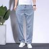 Летние мужские джинсы из мягкой лиоцелловой ткани, тонкие свободные прямые брюки, корейские повседневные брюки с эластичной резинкой на талии, большие размеры