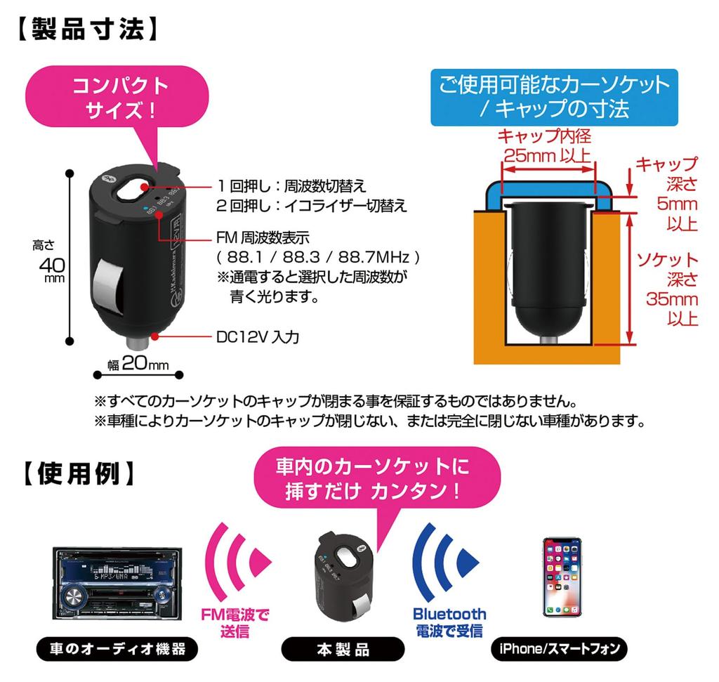 Kashimura NKD-231 Bluetooth FM-трансмиттер со сверхкомпактным дизайном, закрывающий крышку штатных разъемов, черный