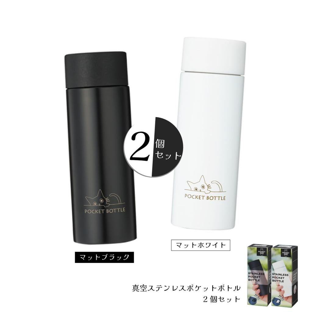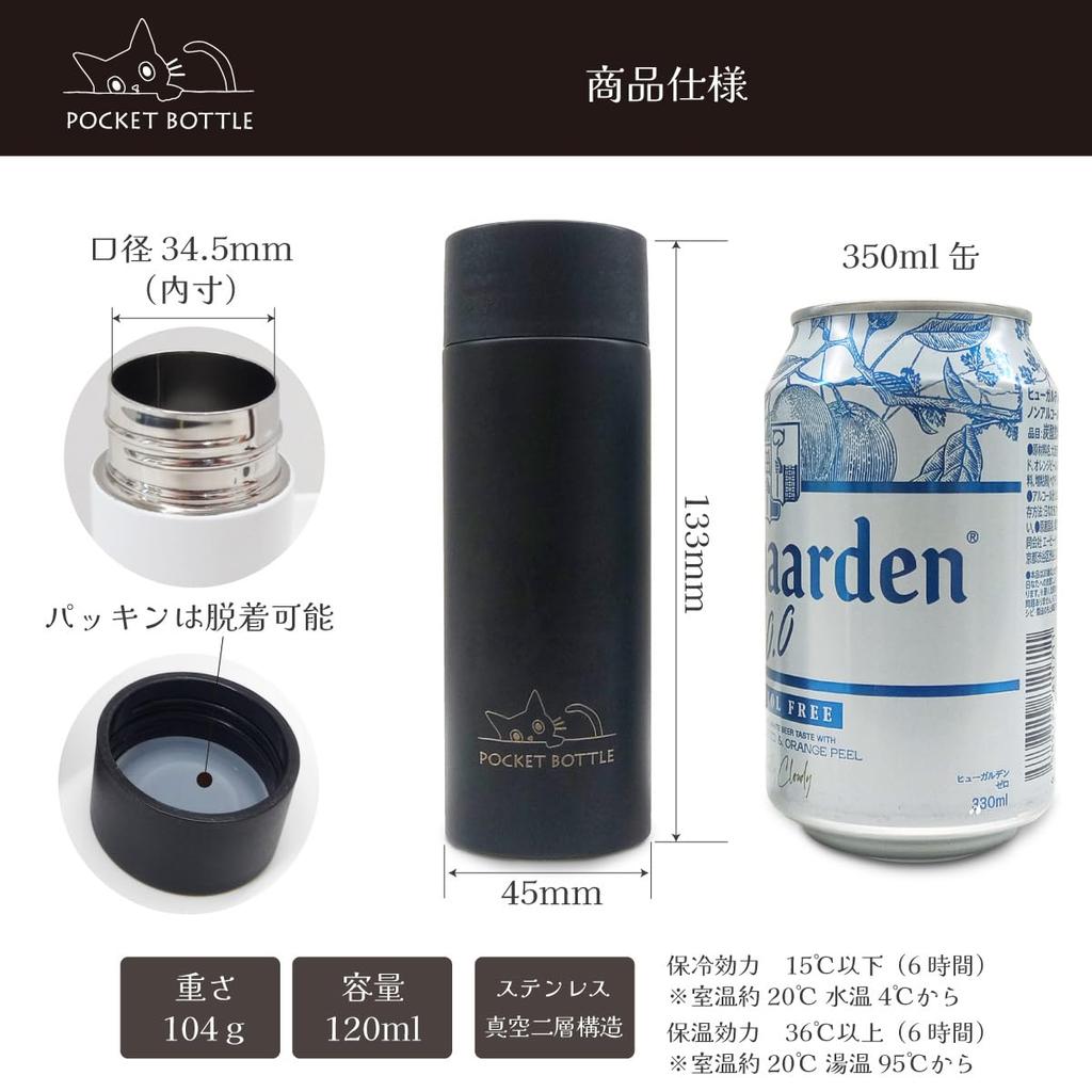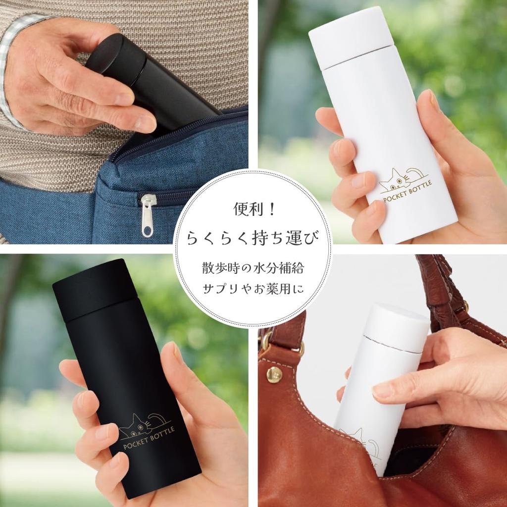Set of 2 Mini Water Bottles, Vacuum Stainless Steel Pocket Bottles, 120ml, Cute Cat Design, Slim Design, Lightweight, Double-walled Vacuum Wall,