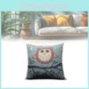 Декоративная аниме-подушка-сова, съемный льняной чехол, мягкий полиэстеровый наполнитель, для дивана