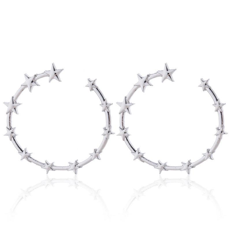 Звездные Шикарные Серьги-Кольца для Женщин Модный Золотой Серебристый Дизайн Минималистичные