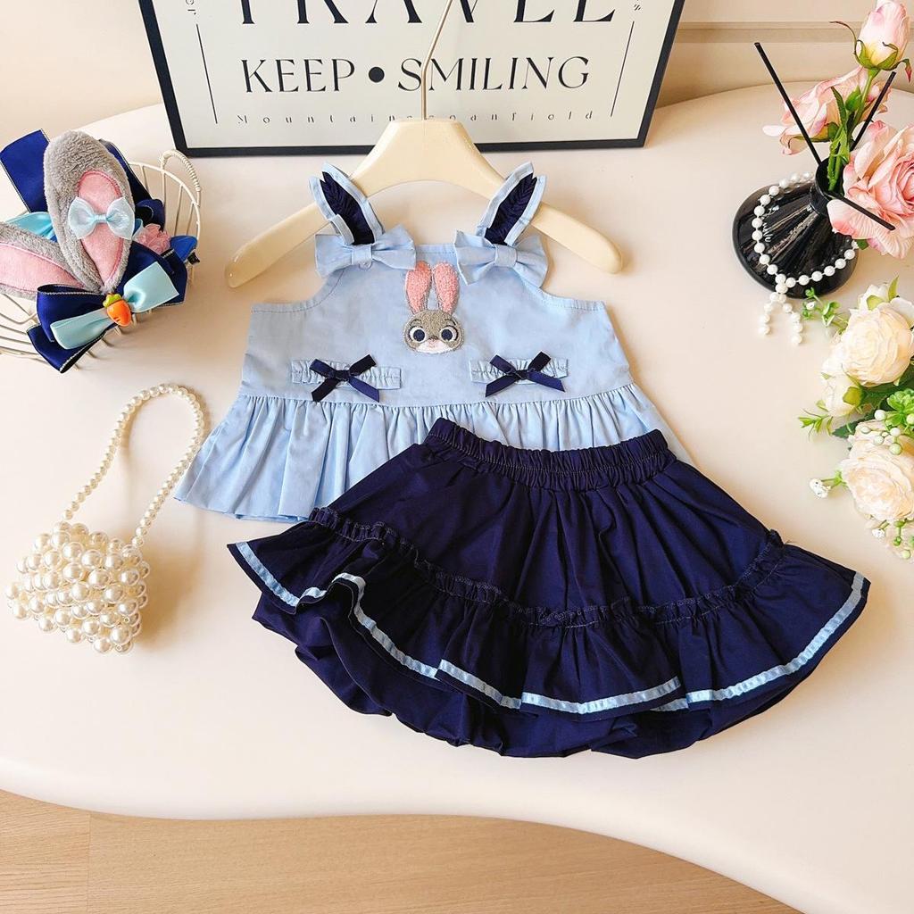 The Girls' Summer Rabbit Officer Two-Piece Set is a delightful outfit perfect for warm, sunny days. This charming set includes a sleeveless vest and a matching skirt, both crafted from soft and breathable cotton for maximum comfort. The playful design and vibrant colors make it an ideal choice for any summer adventure or casual outing, ensuring your little one looks stylish and feels great all day long.
