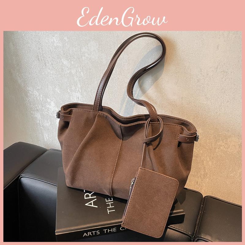 Винтажная однотонная женская повседневная сумка-тоут из замши большой вместимости с карточкой для сумки