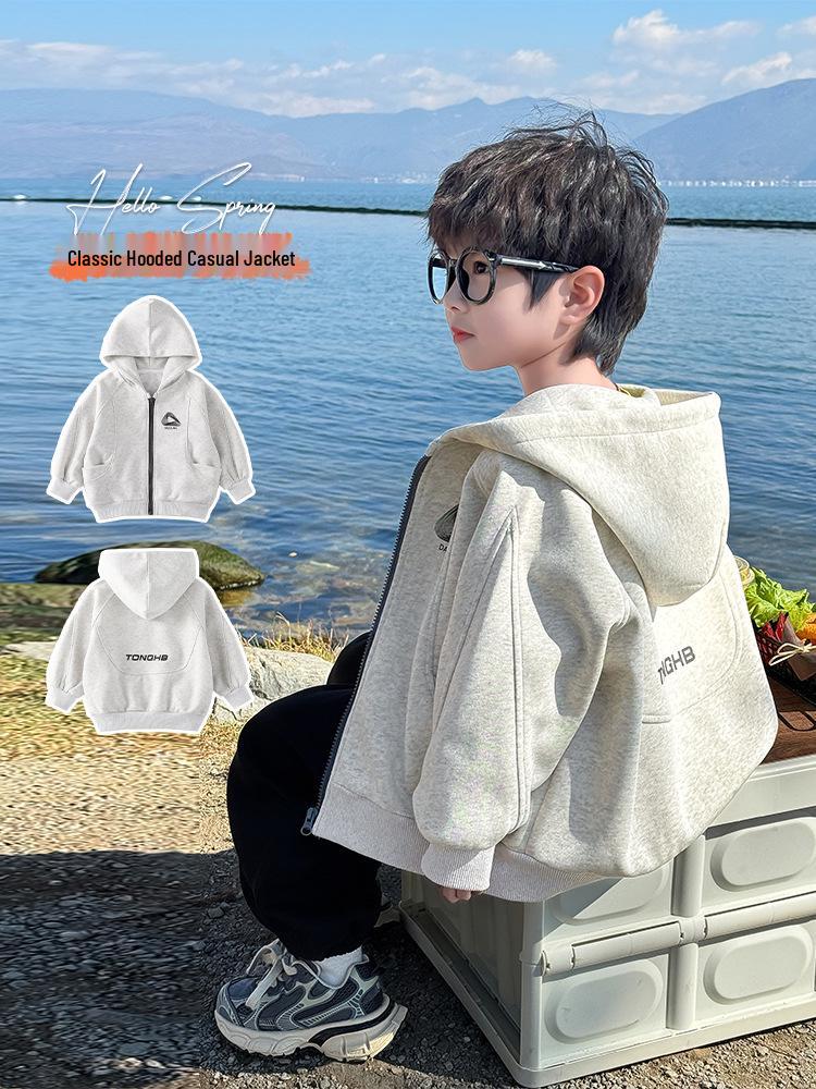 2025 Весна и Осень Куртка с капюшоном для мальчиков - Повседневный кардиган-свитшот для детей