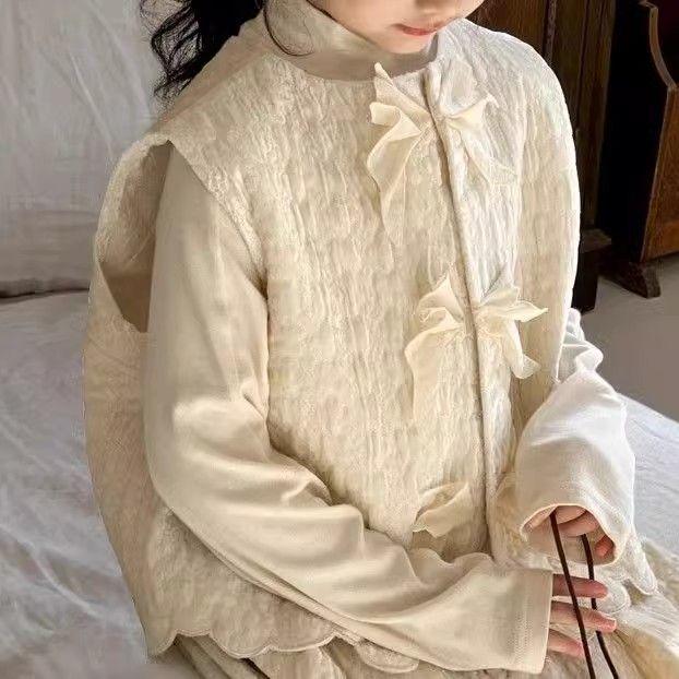 2025 Элегантный комплект для девочек в китайском стиле: жилет и юбка - трехпредметный наряд на весну/осень