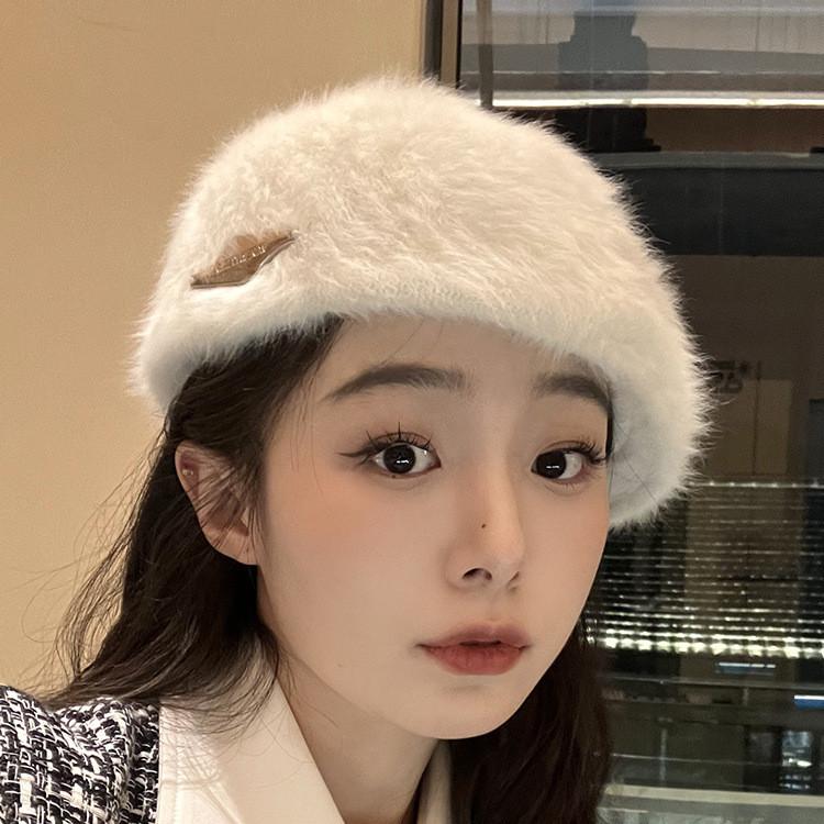 Модный Уютный Берет из Кроличьего Меха Стильная Зимняя Шапка в Ретро-стиле для Женщин