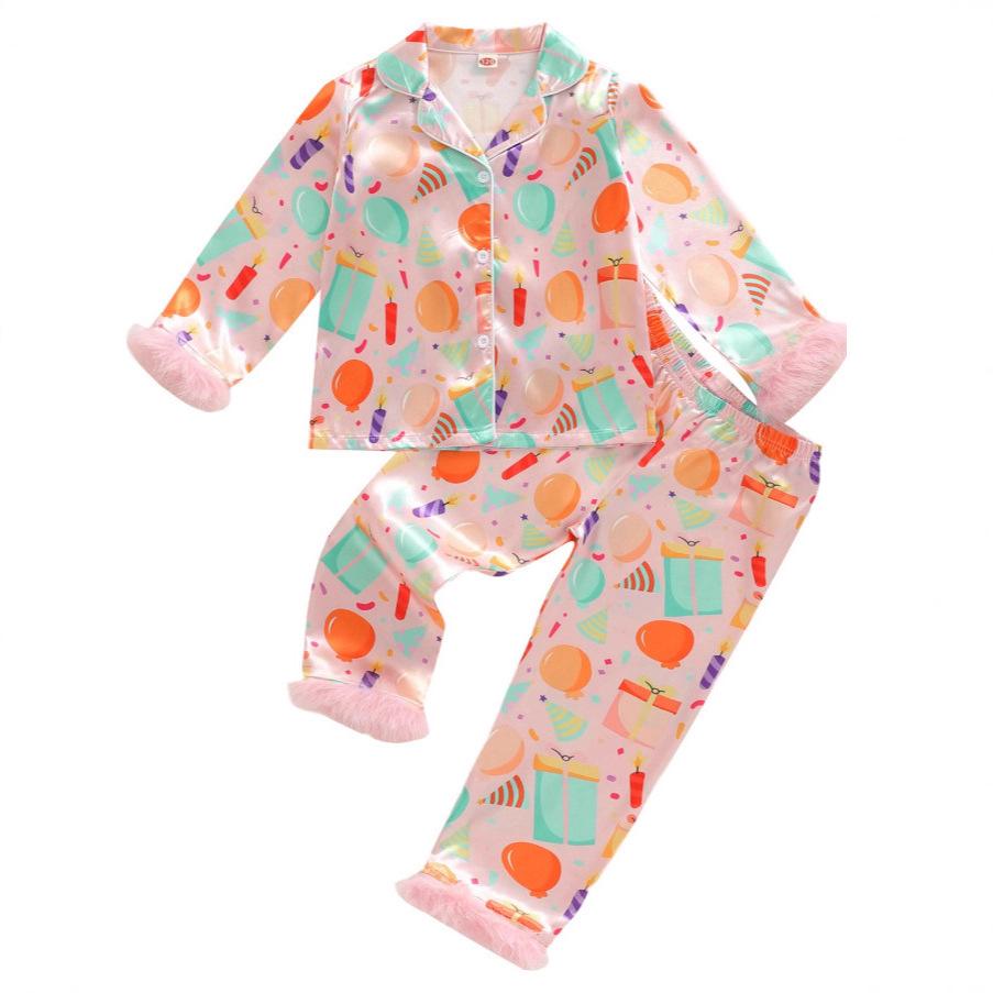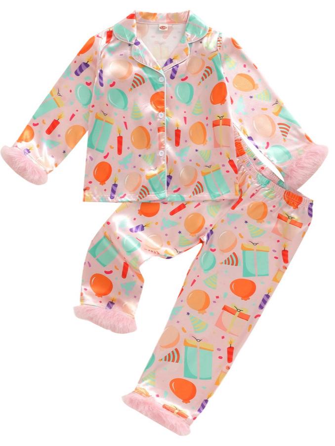 Introduce a touch of luxury and comfort to your child's nighttime routine with this exquisite pajama set. Crafted from high-quality satin, the long-sleeve design offers a silky-smooth feel, providing gentle care against the skin. The set is perfect for autumn, offering a cozy yet fashionable option for casual wear at home. Its fuzzy texture adds an extra layer of warmth, ensuring your little one stays snug during cooler nights, all while looking stylish and feeling at ease.