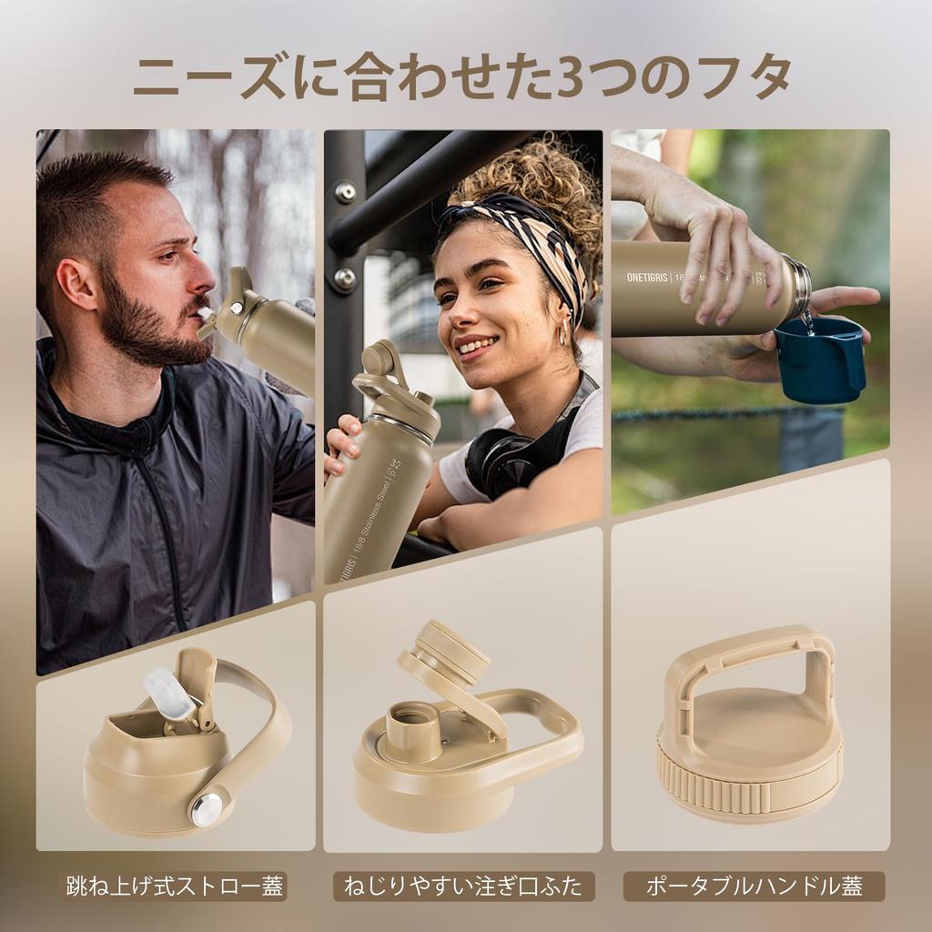 Набор бутылок для воды OneTigris из нержавеющей стали 1 литр с чехлом, с вакуумной изоляцией, сохраняет горячим или холодным, включает 3 сменные крышки, 2 соломинки и 1