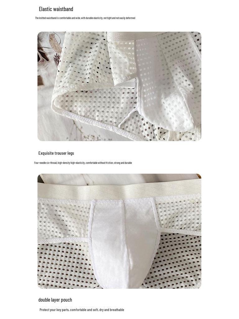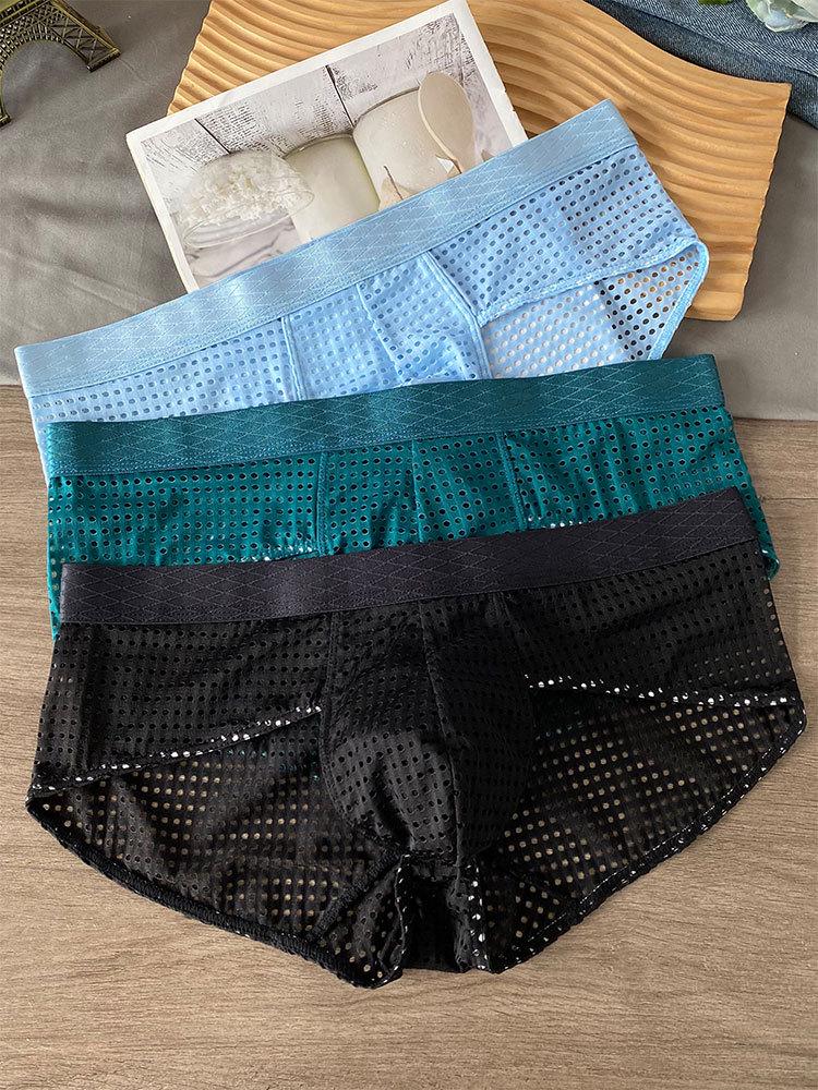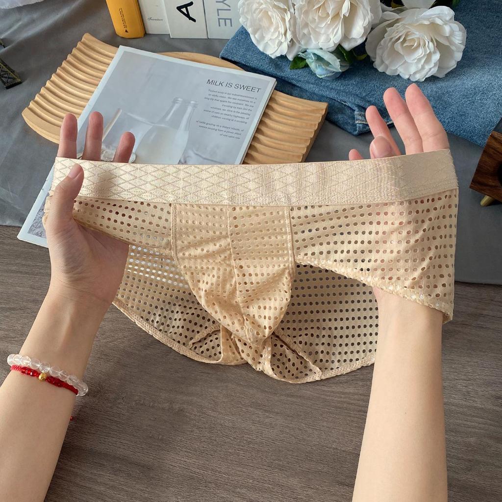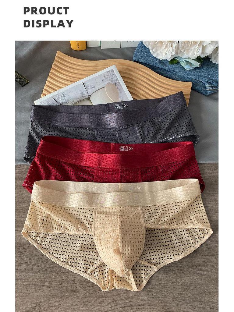 Мужские дышащие трусы-слипы из ледяного шелка с сетчатыми вставками и широким поясом