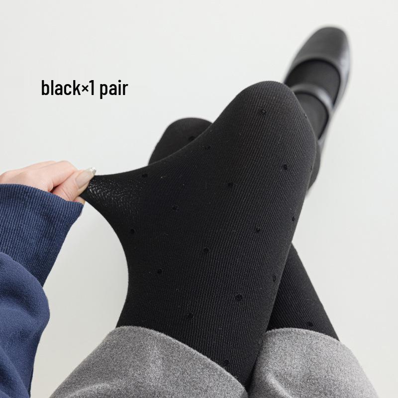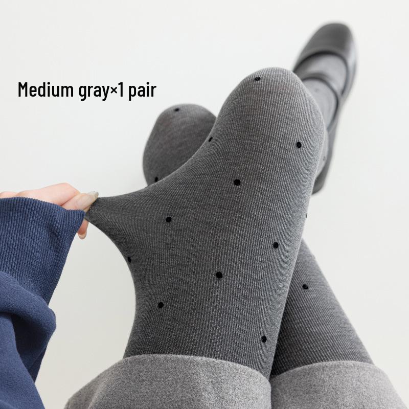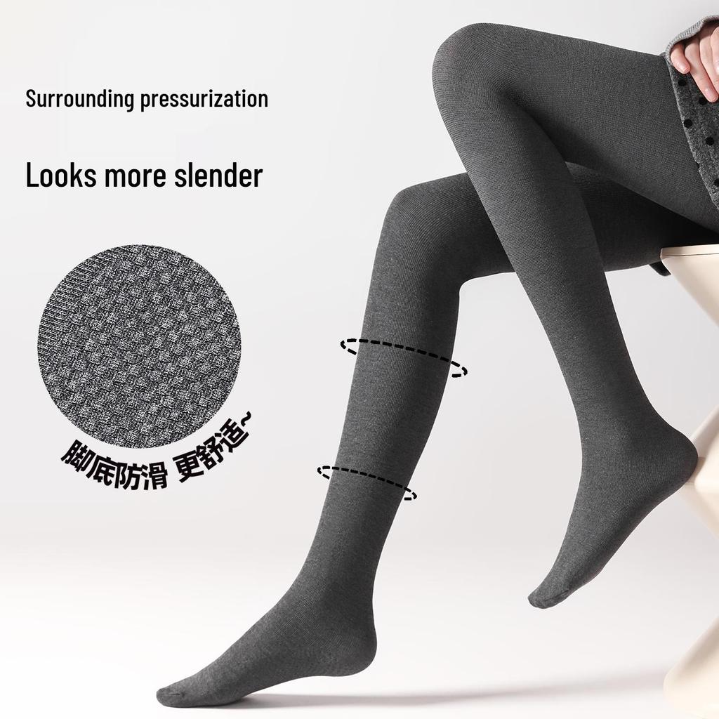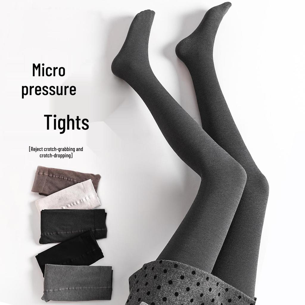 Темно-серые флисовые колготки в горошек с утягивающими полосками