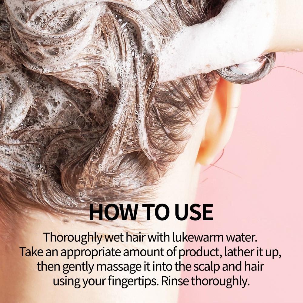 Тщательно намочите волосы теплой водой. Возьмите достаточное количество продукта, вспеньте его, затем аккуратно массируйте кожу головы и волосы кончиками пальцев.. Тщательно промойте.