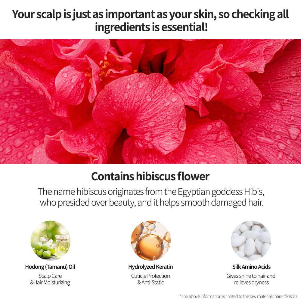 Содержит цветки гибискуса для укрепления здоровья кожи головы и облегчения сухости и раздражения.