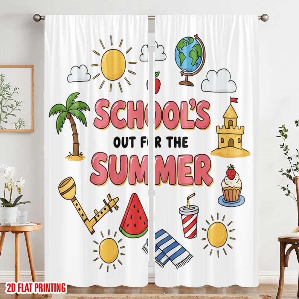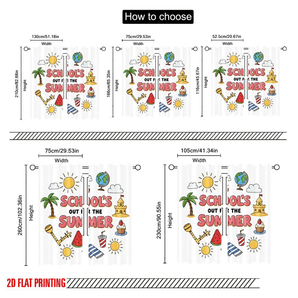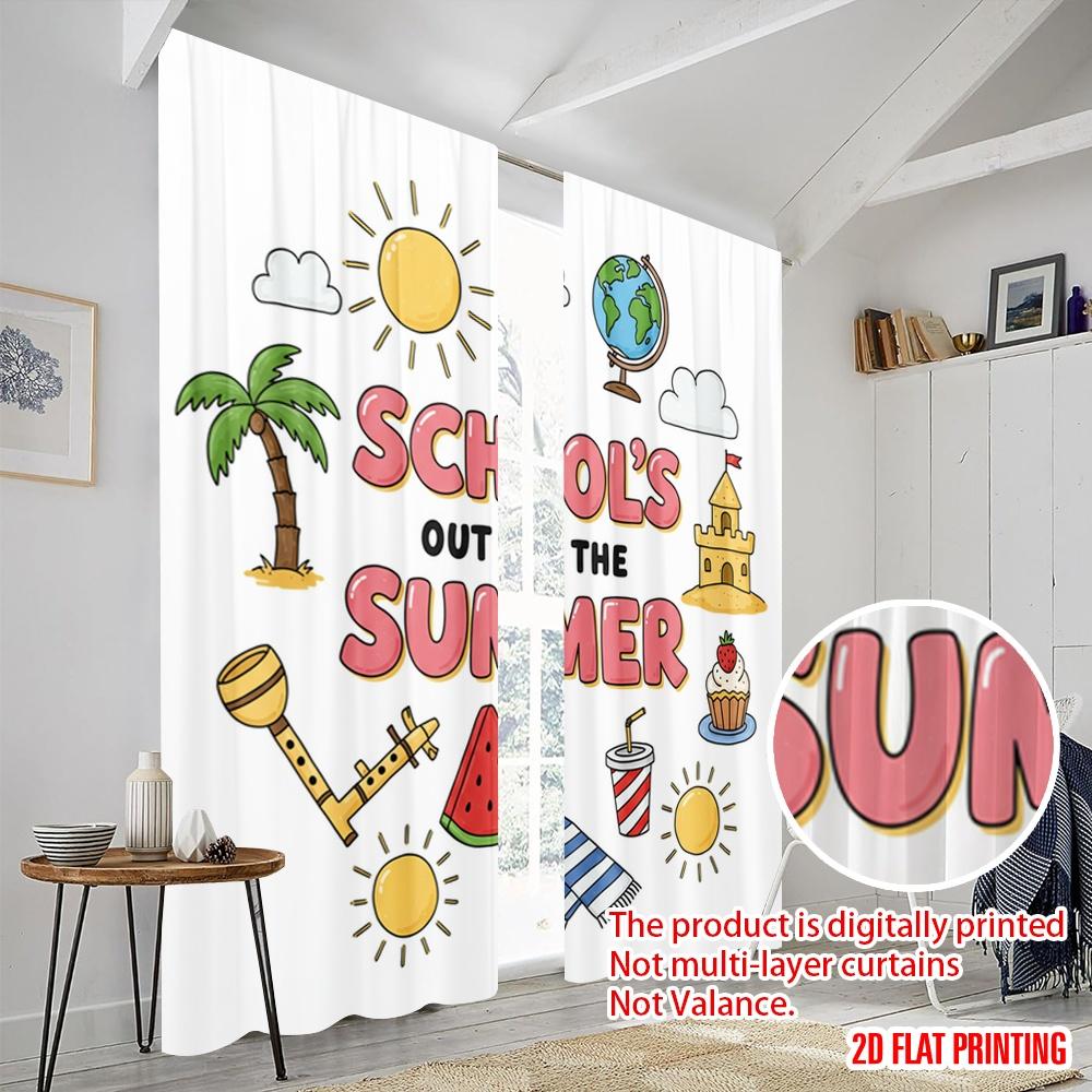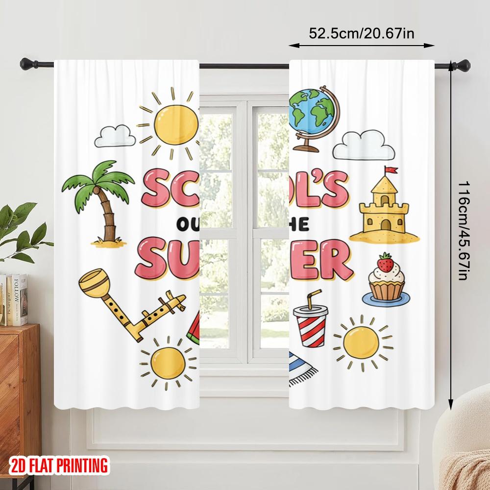 2 шт. 2D плоская печать Шторы для окон Летние каникулы Школьные каникулы Веселый полиэстер Без электричества Украшения для вечеринки для фото